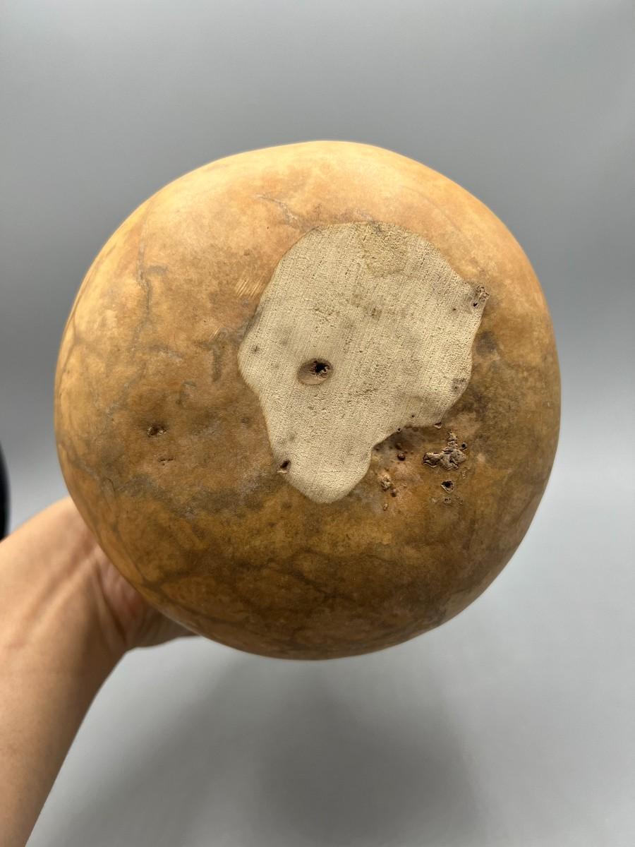 There is no significant damage to the gourd and is in overall good collectible or displayable condition. Check pictures for more details and for sizing.