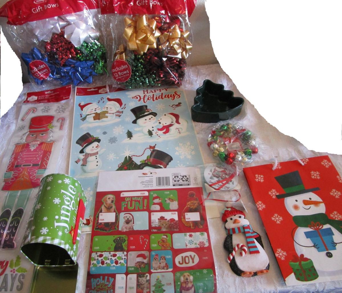 bows, ornaments, window décor, tree candy dish, bag, small mail box, see pictures