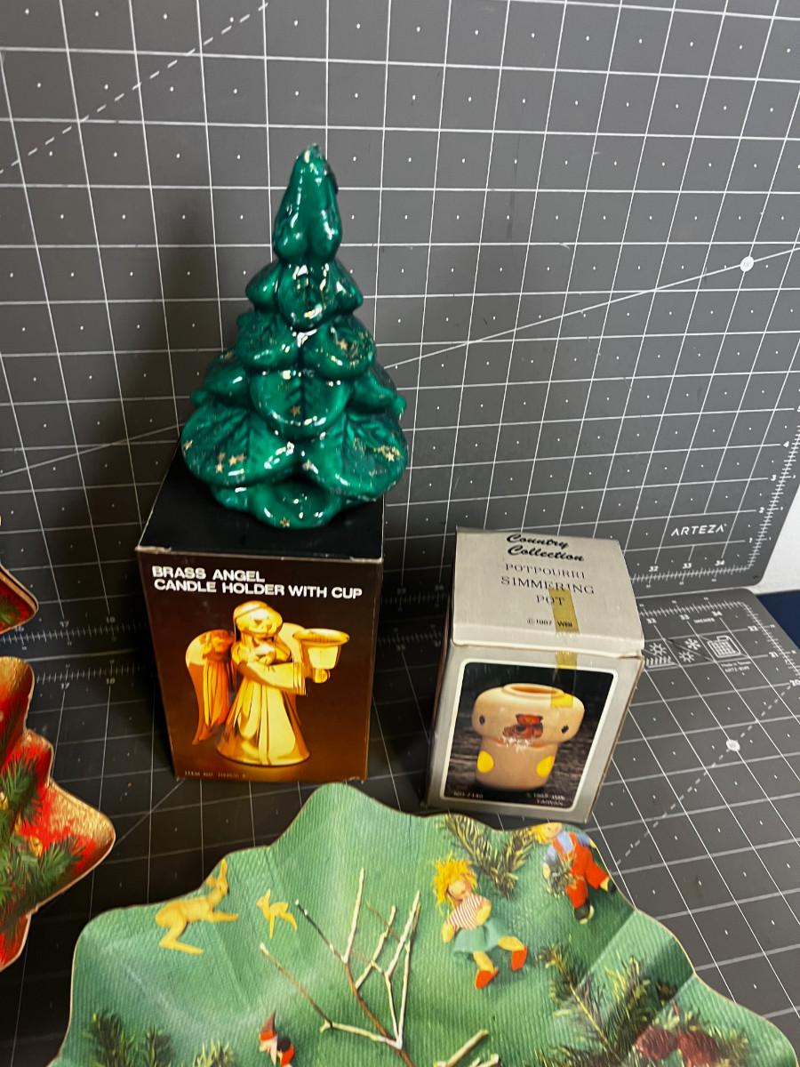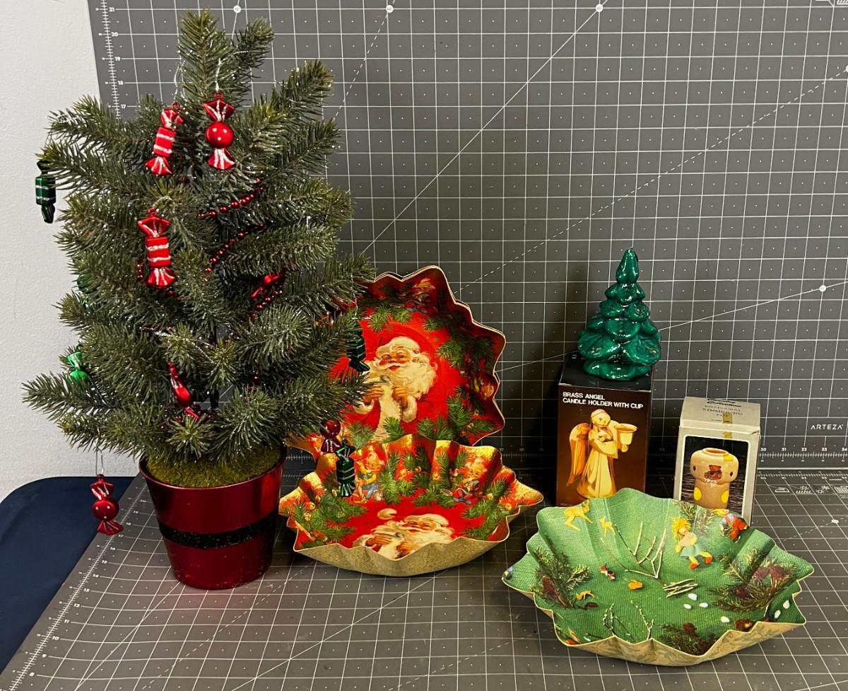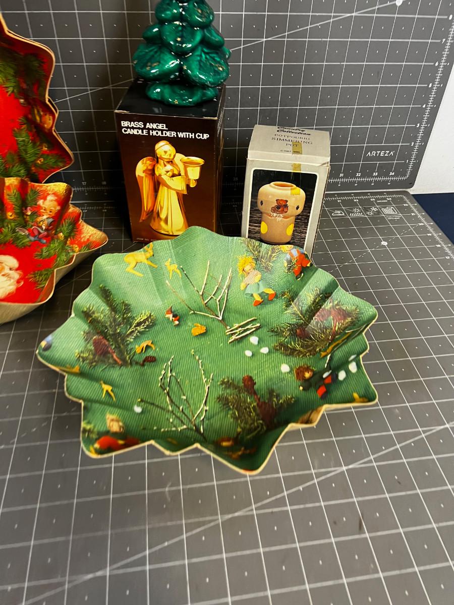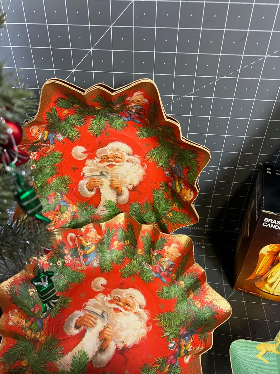 Cute Vintage Paper Bowls with Classic Santa, Candle and Candle Holder.