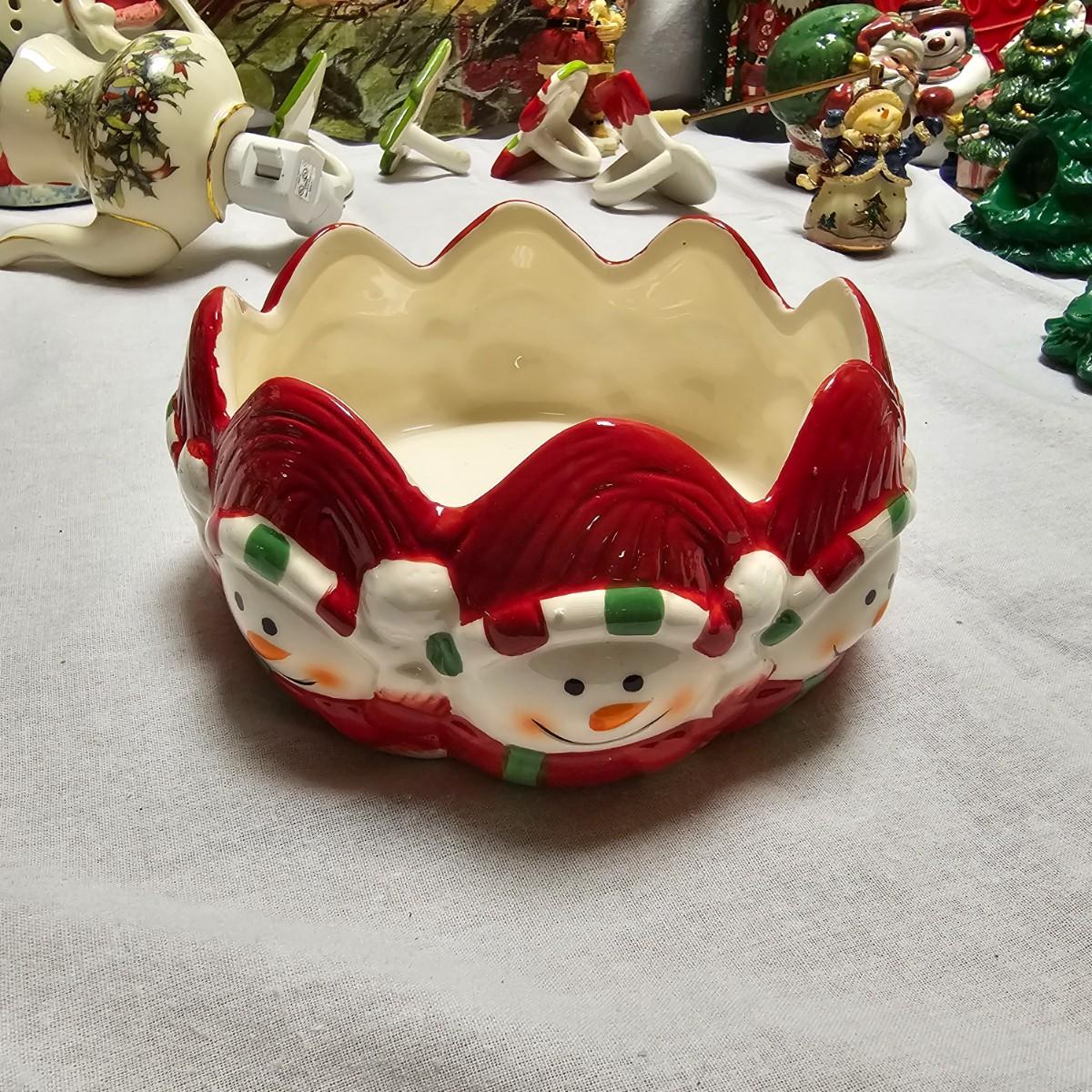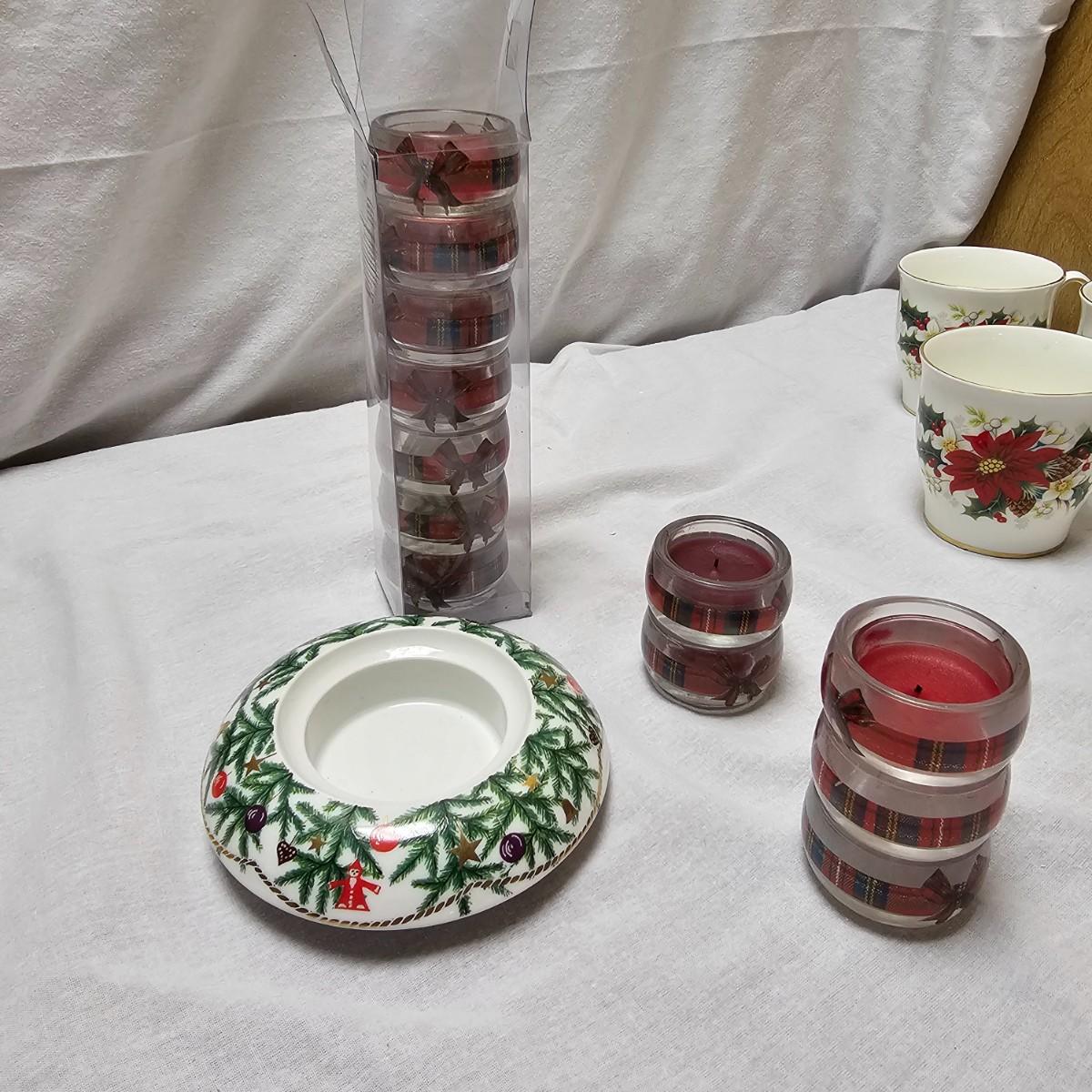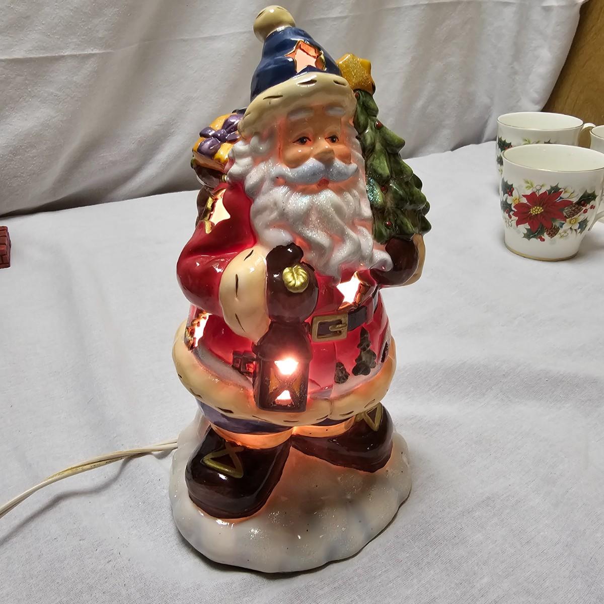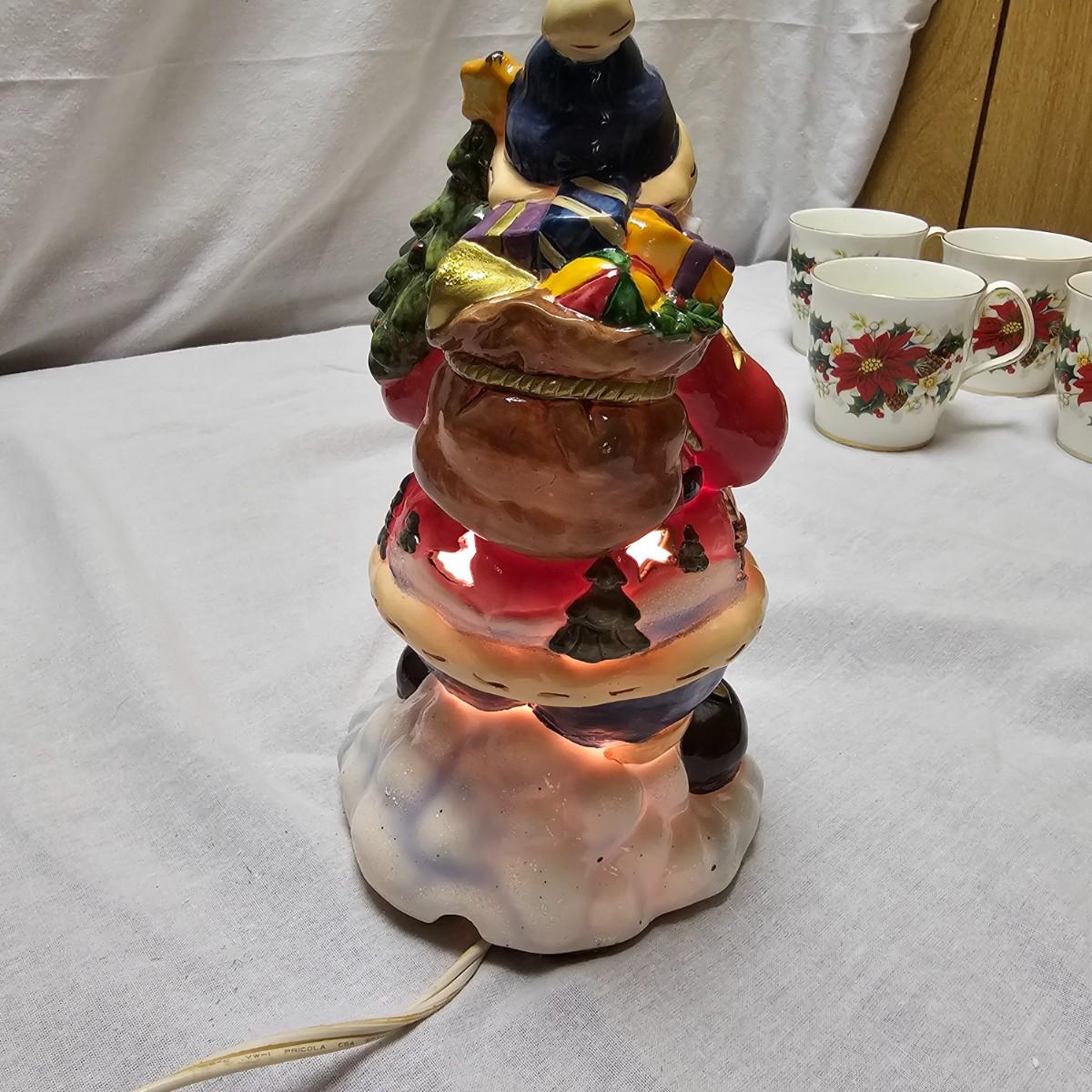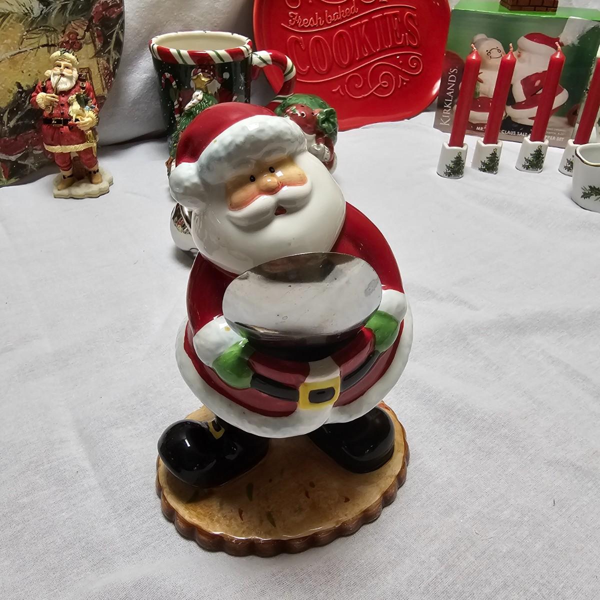 Cookie plates, serving pieces, napkin rings, salt & pepper sets, more. Delightful items to spice up the holidays. Glass cardinal lazy susan, 13"D. Blue Santa cookie jar, 7"D x 9"H. White oval Hallmark plate 7" x 13". Cups, candle holders, table figures, more. Partylite house holds votive candles inside. Electric items powered on when plugged in. See photos for details. Shipping available. Shipping can be costly. We suggest contacting our preferred local shipping provider, Postal Express, with dimensions and getting an estimate prior to bidding: 828-670-5501 or postageexpress@yahoo.com