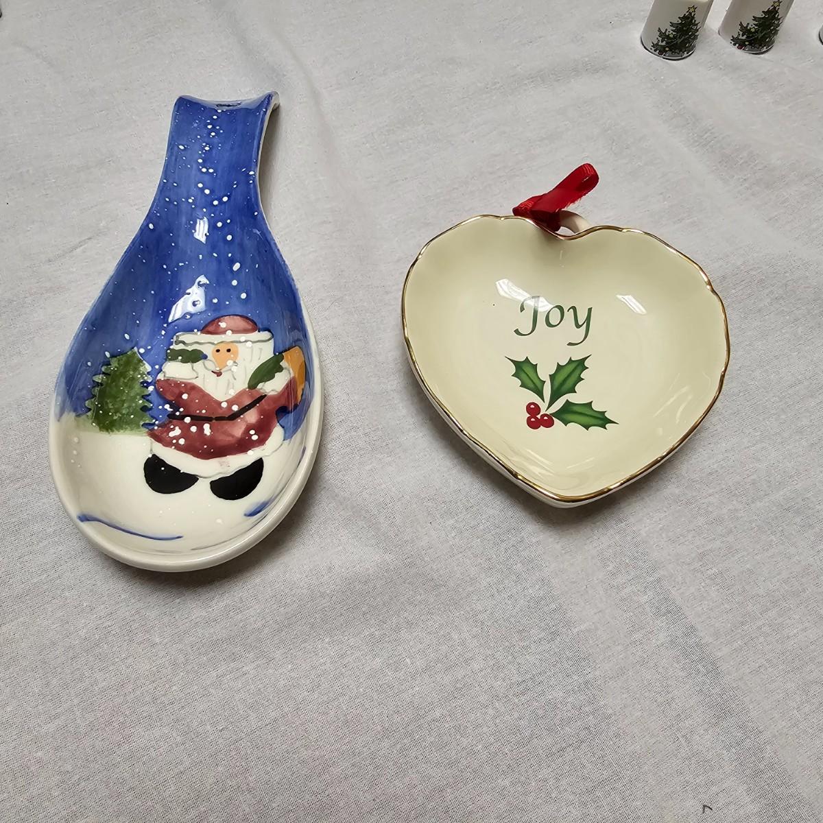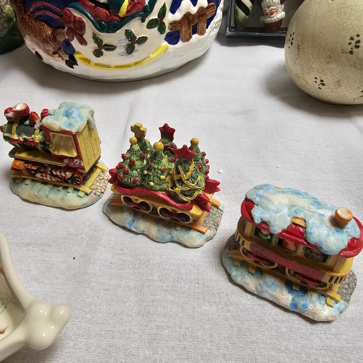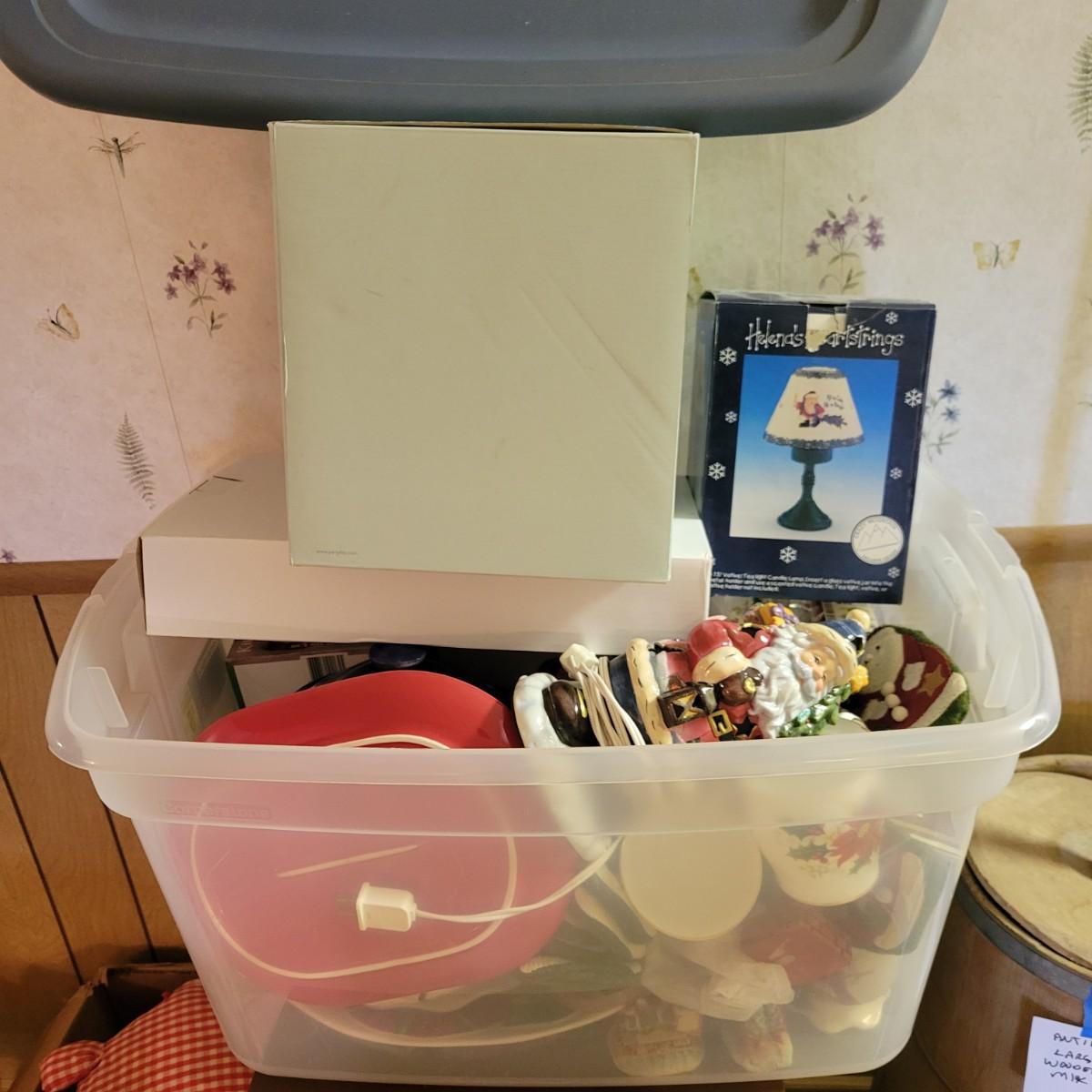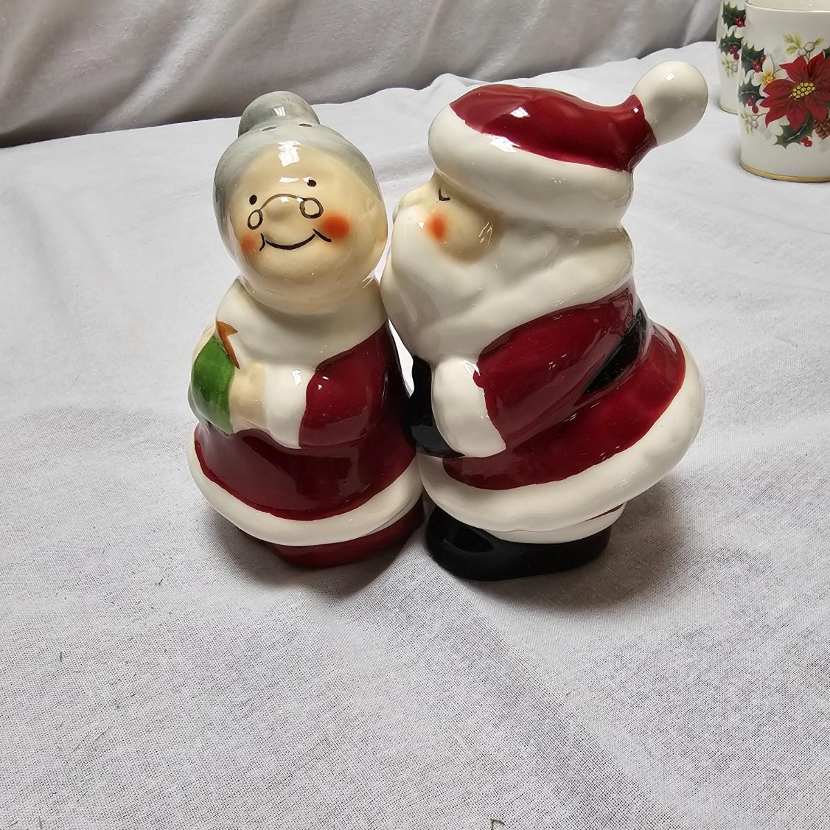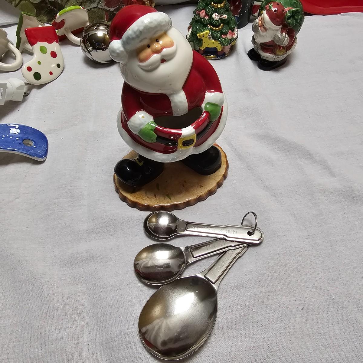 Cookie plates, serving pieces, napkin rings, salt & pepper sets, more. Delightful items to spice up the holidays. Glass cardinal lazy susan, 13"D. Blue Santa cookie jar, 7"D x 9"H. White oval Hallmark plate 7" x 13". Cups, candle holders, table figures, more. Partylite house holds votive candles inside. Electric items powered on when plugged in. See photos for details. Shipping available. Shipping can be costly. We suggest contacting our preferred local shipping provider, Postal Express, with dimensions and getting an estimate prior to bidding: 828-670-5501 or postageexpress@yahoo.com