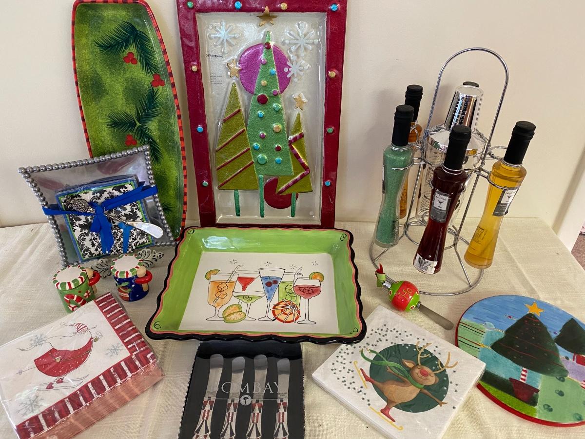 Includes a department 56 tray. Some items are new and never used. All in two bags in guestroom closet.