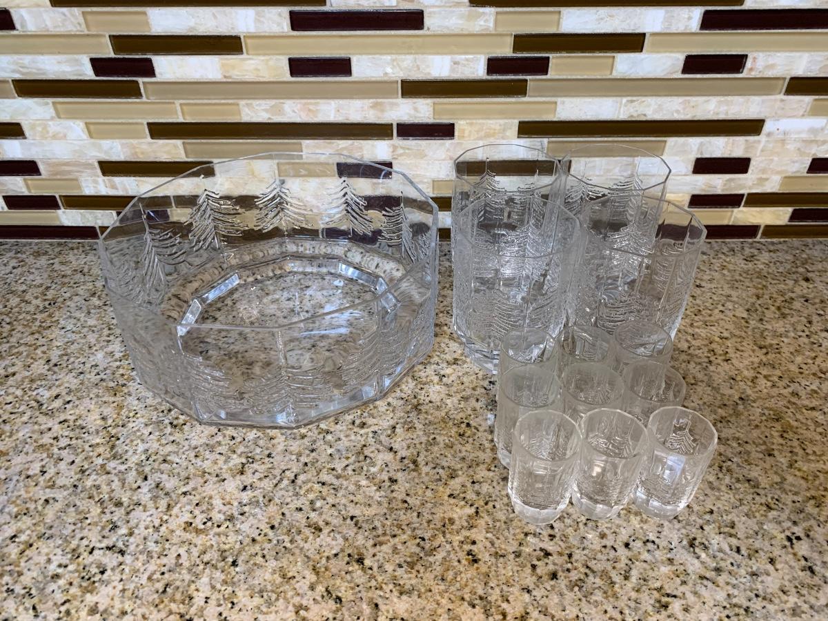 Christmas Themed Set (punch bowl, 4 glasses, 9 shot glasses)