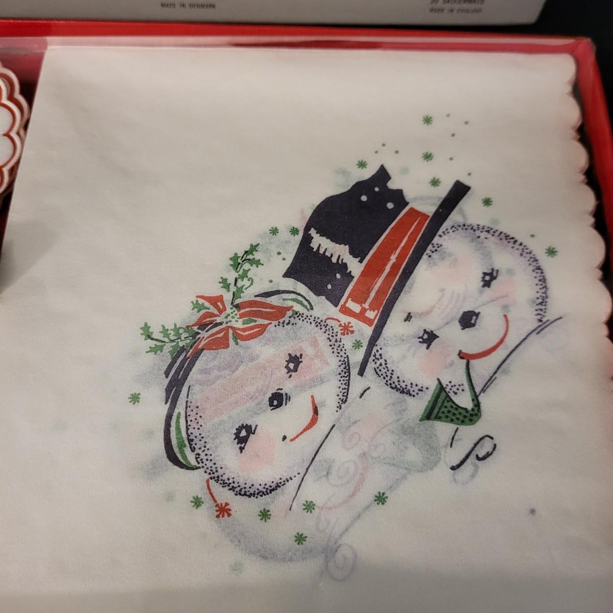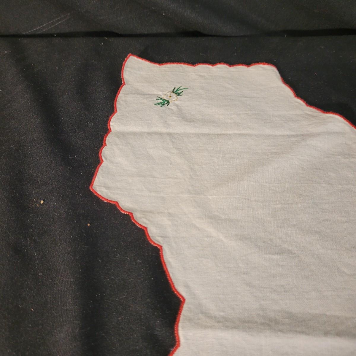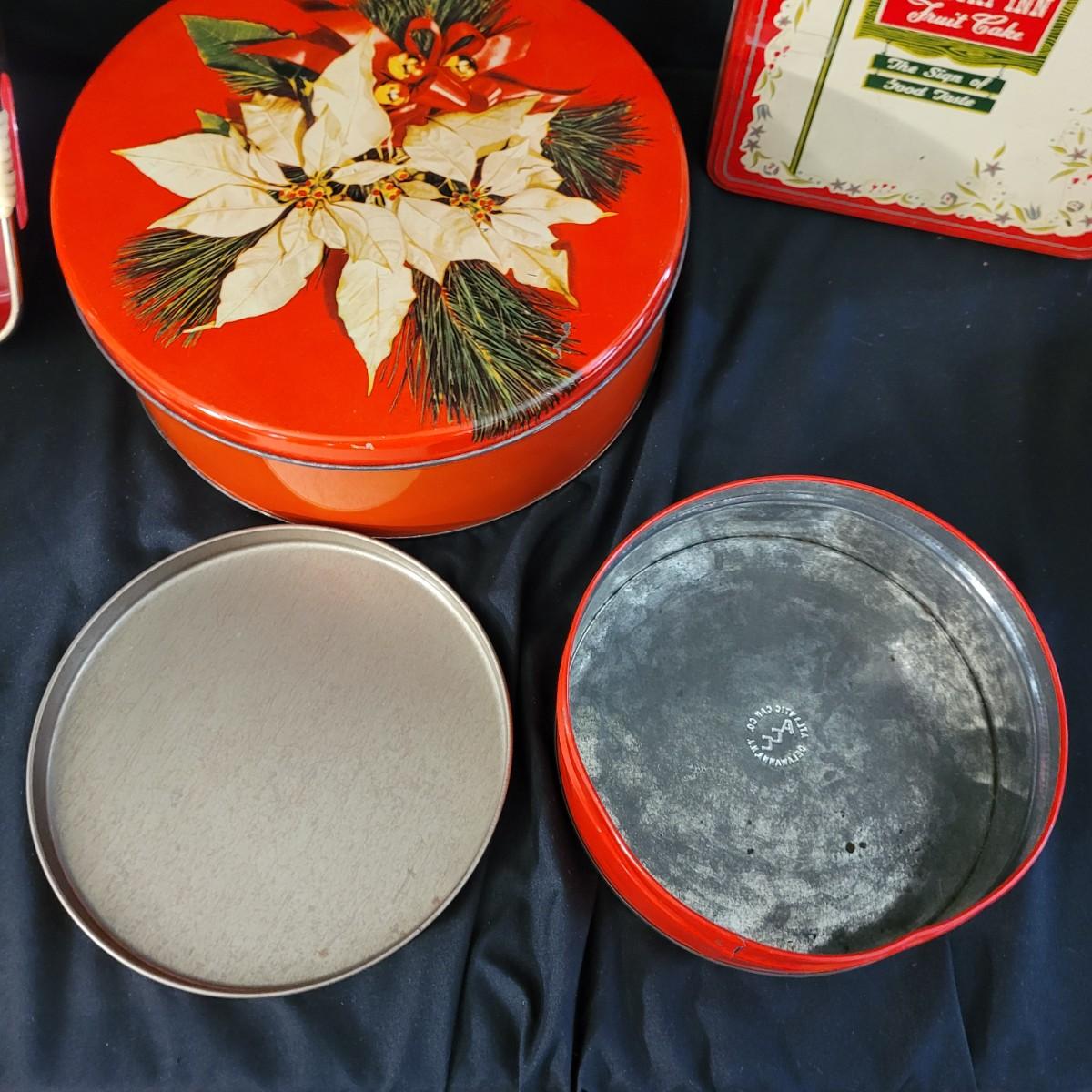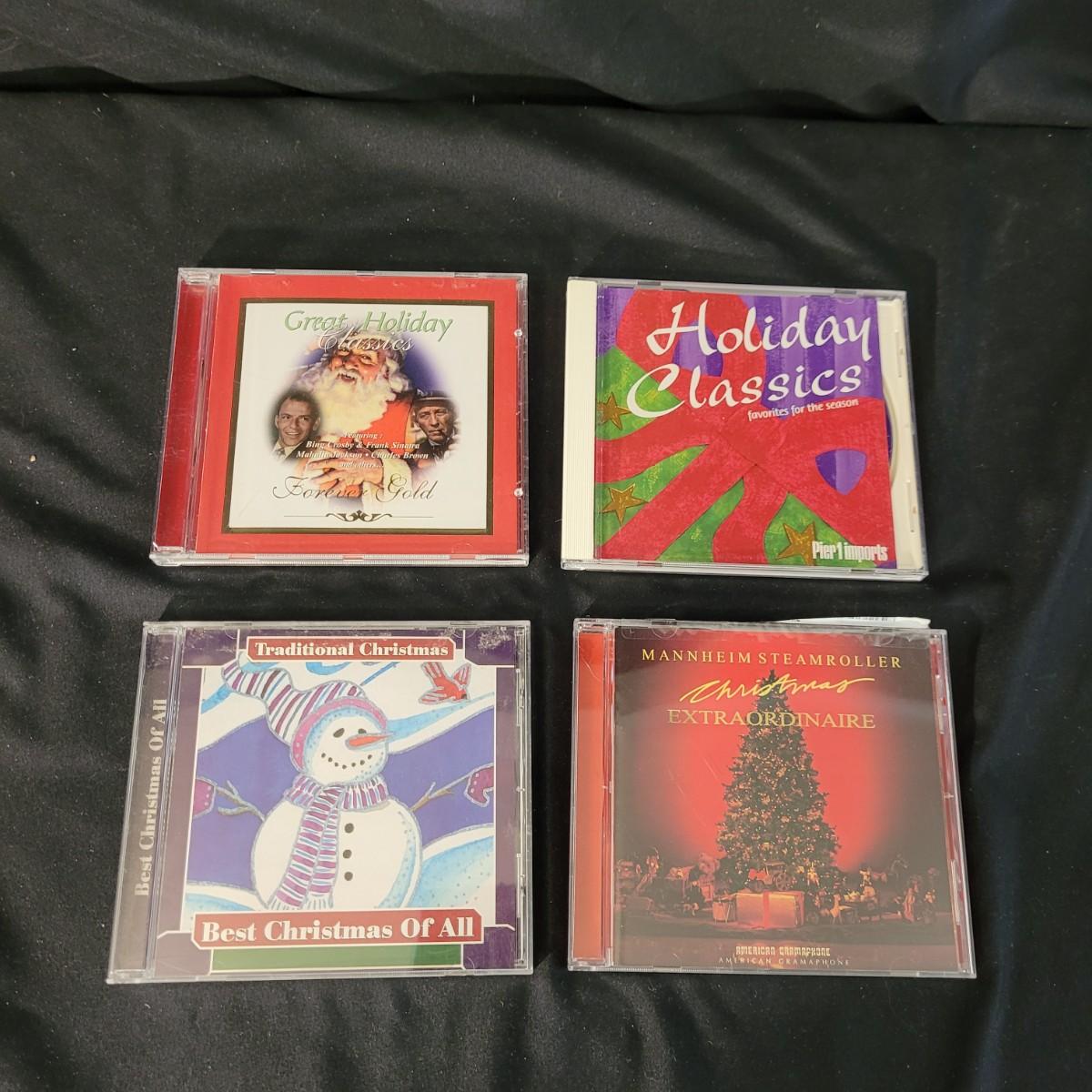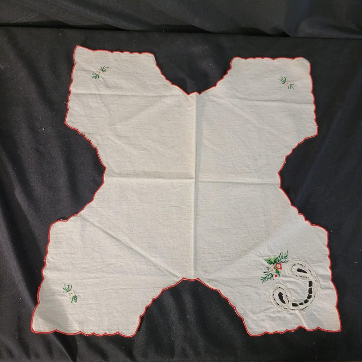 The theme in this collection is red like the winter holly berry. Includes a variety of tins, an unused three lacquer ware tray set, candle set of a drummer boy in his home, a glass tree jar, vintage snowman napkin set, glass and ceramic mugs, holiday music CD's, and a linen table centerpiece. Largest lacquer ware tray measures approximately 20"L x12"W. Shipping available.