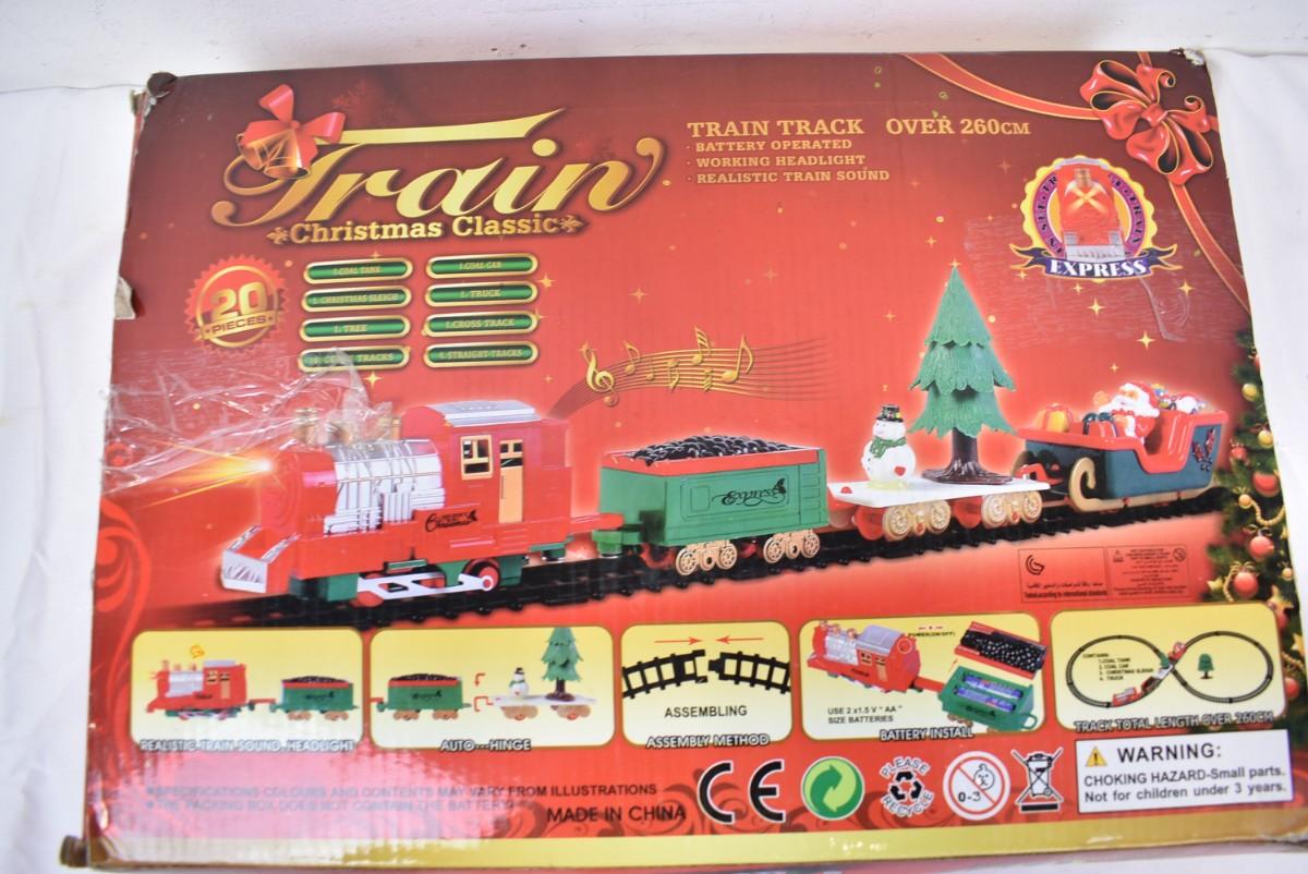 Christmas Train and Track (Broken between 1st and 2nd car) Battery operated-Used