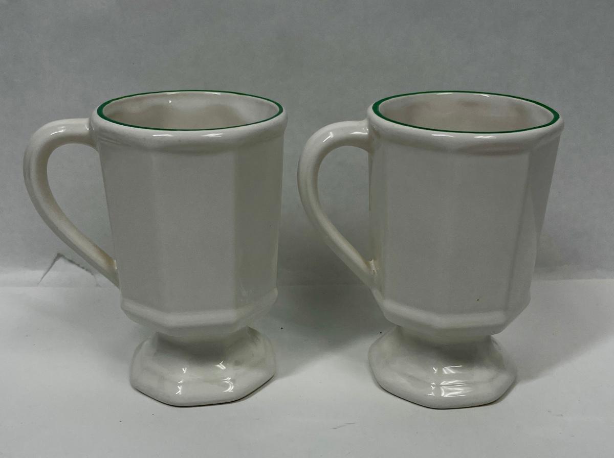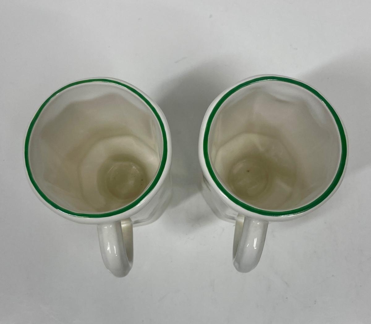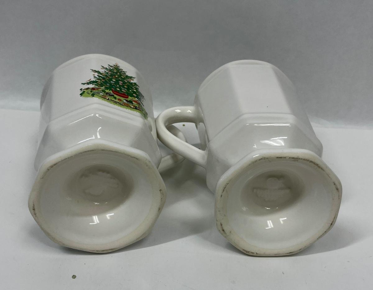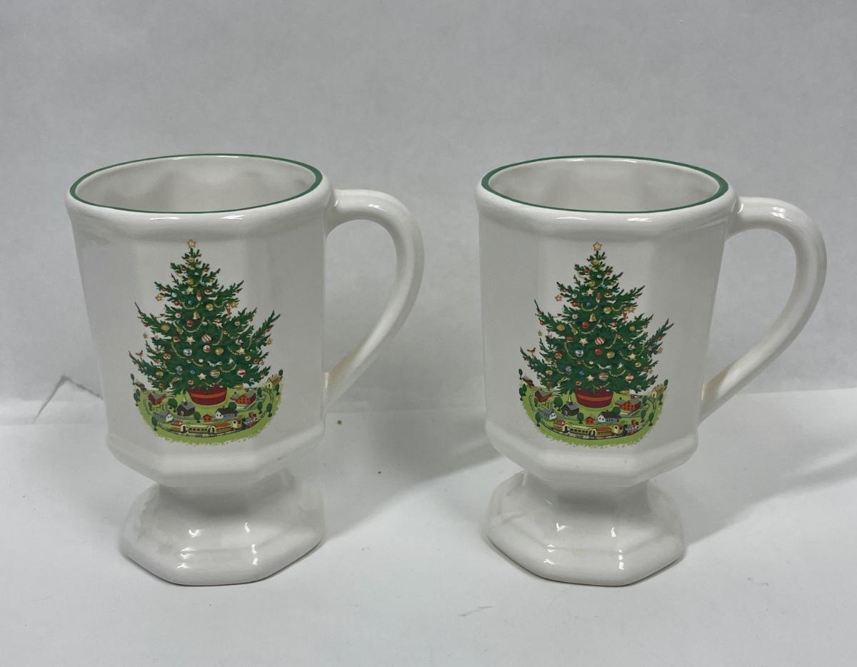 Pair of tall ceramic coffee cups with a full-color Christmas Tree image. Used, but in good condition.