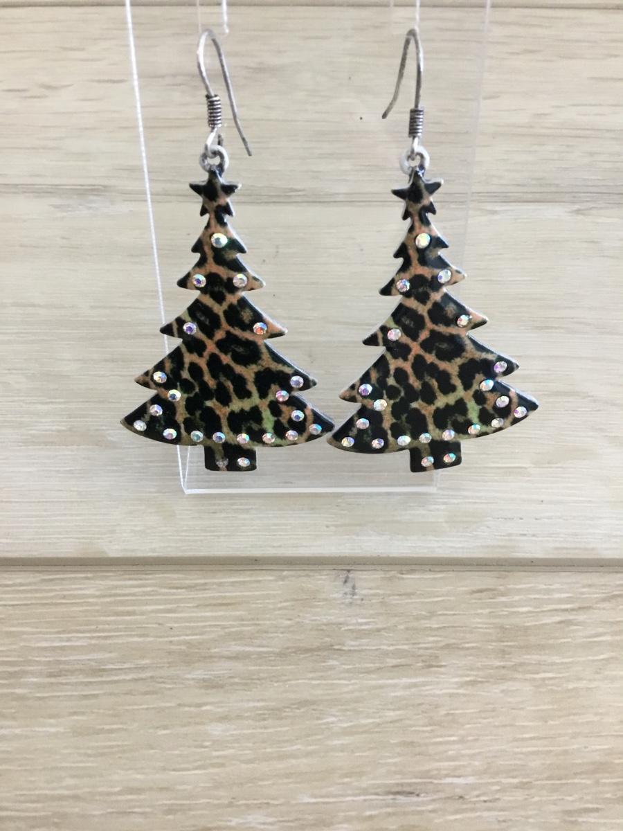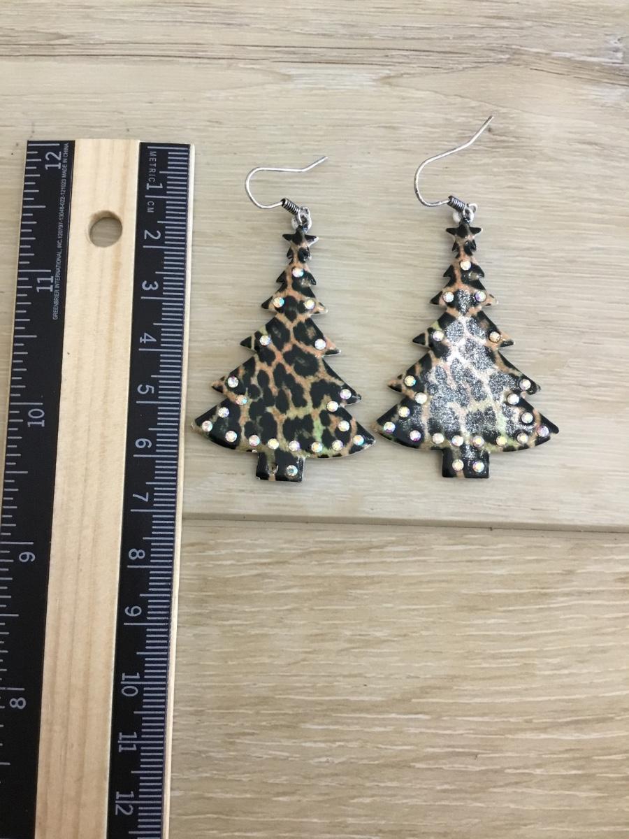 Christmas tree Leopard metal earrings