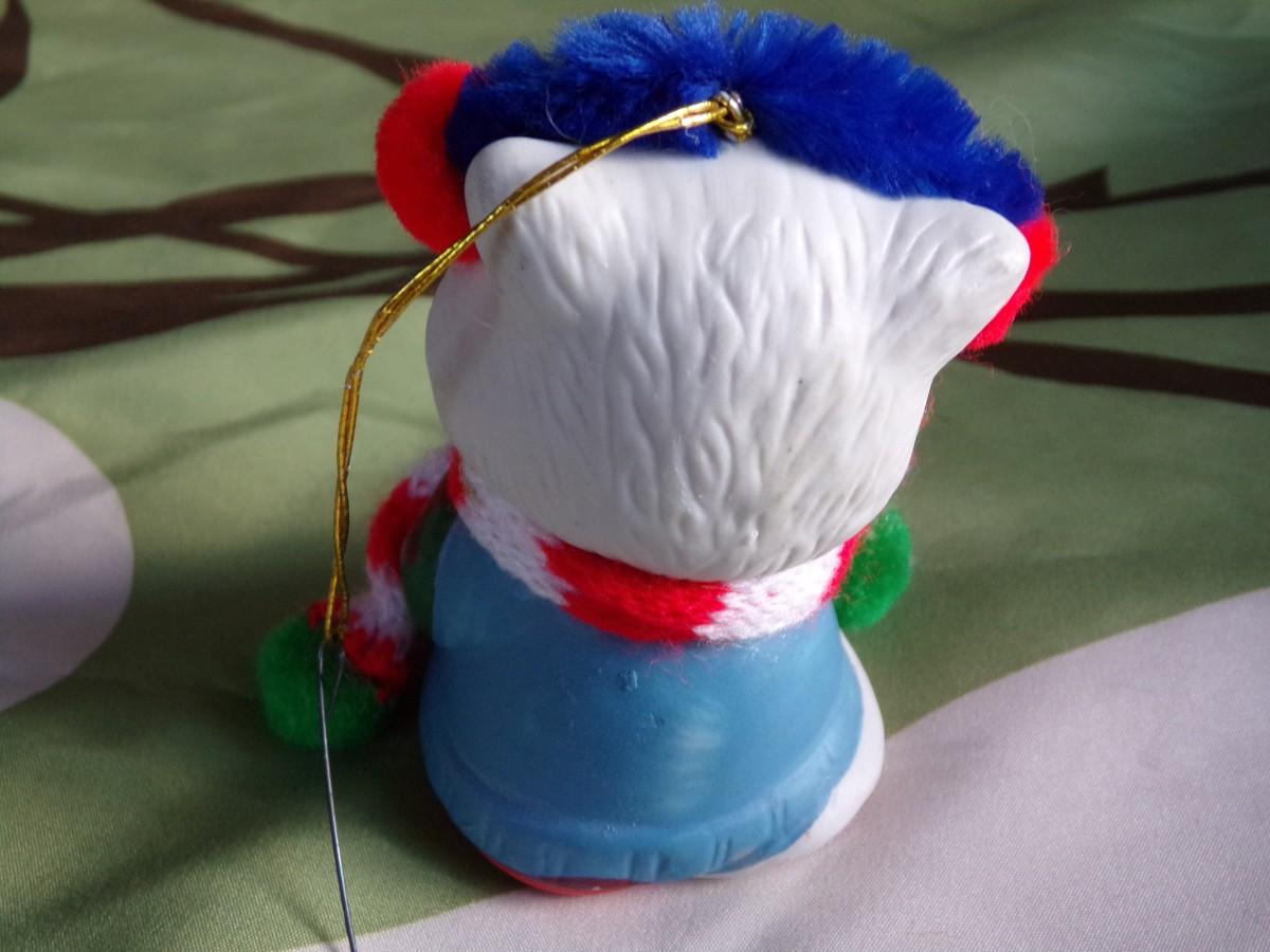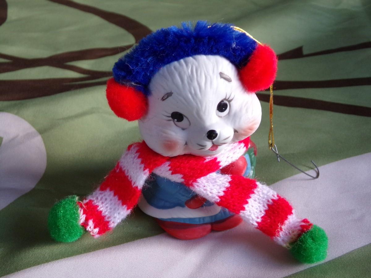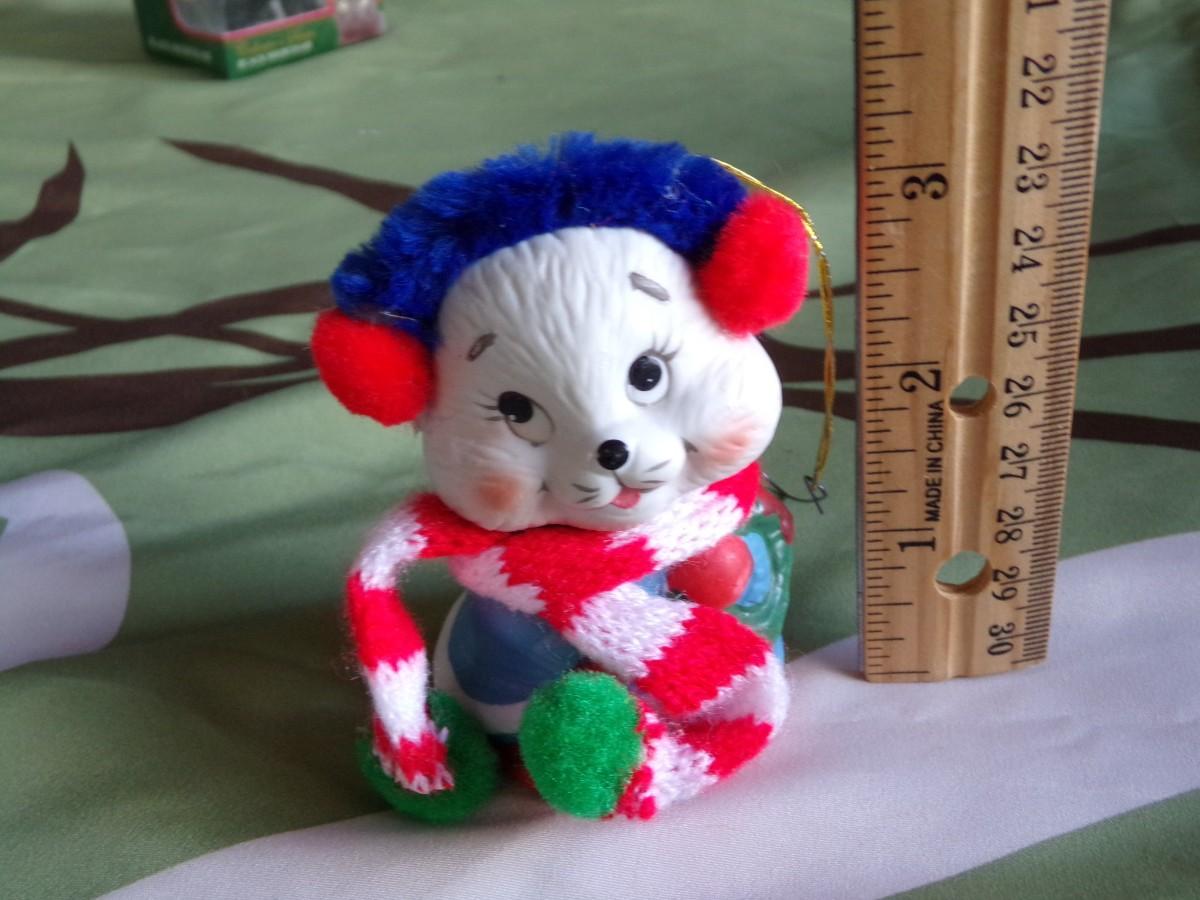 Christmas tree ornament, ceramic bell w/clapper, resembles a caricature of a mouse?