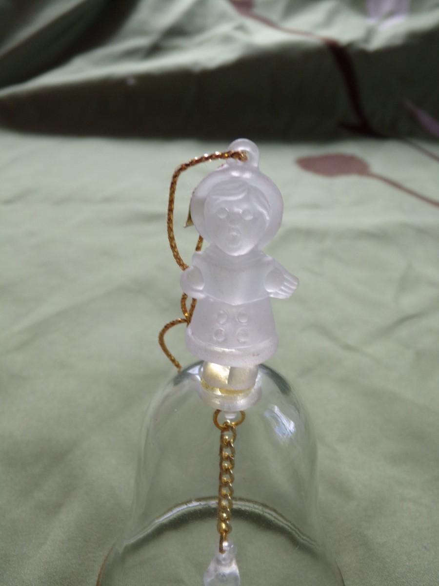 Christmas tree ornament glass bell with clapper & snowperson on top. About 3" tall