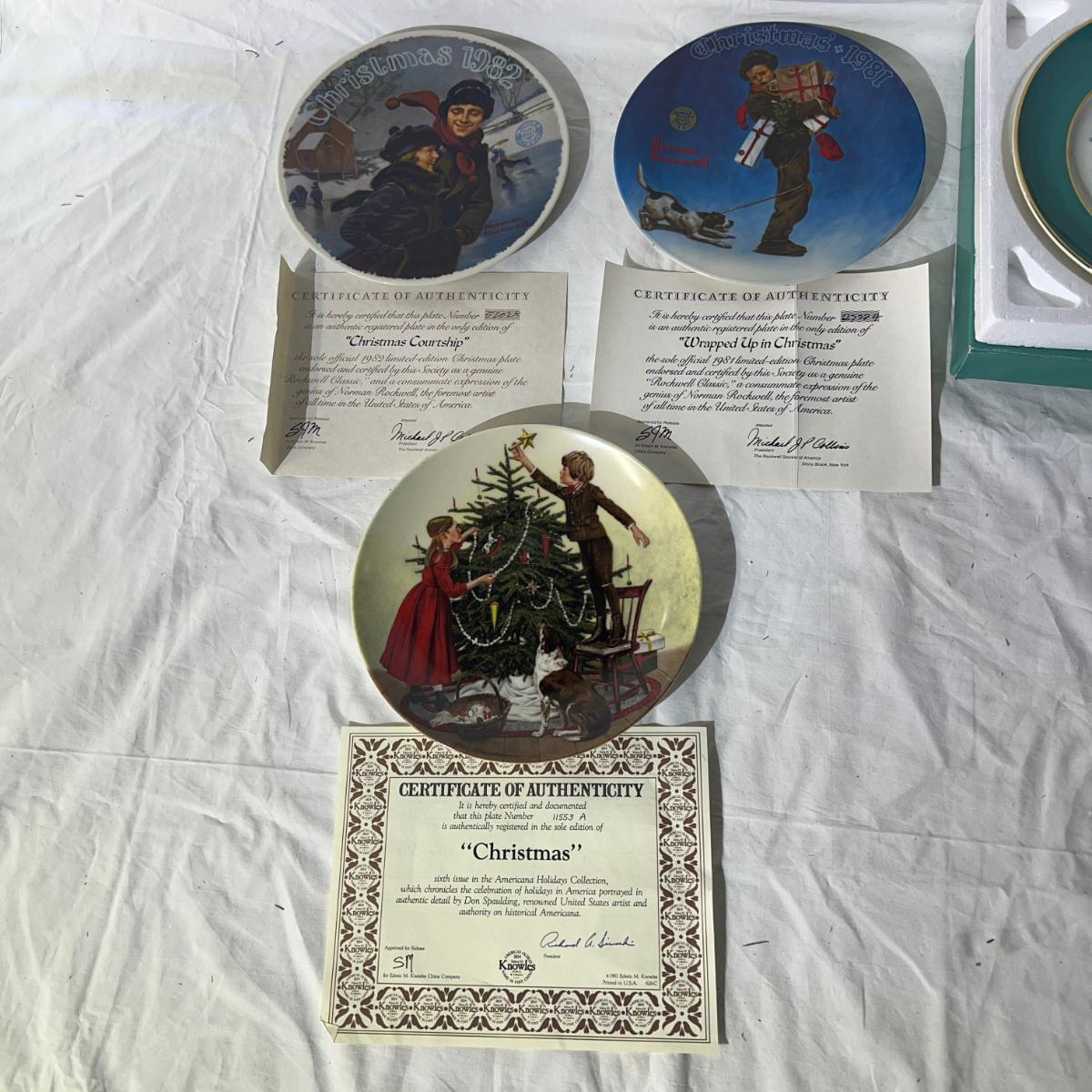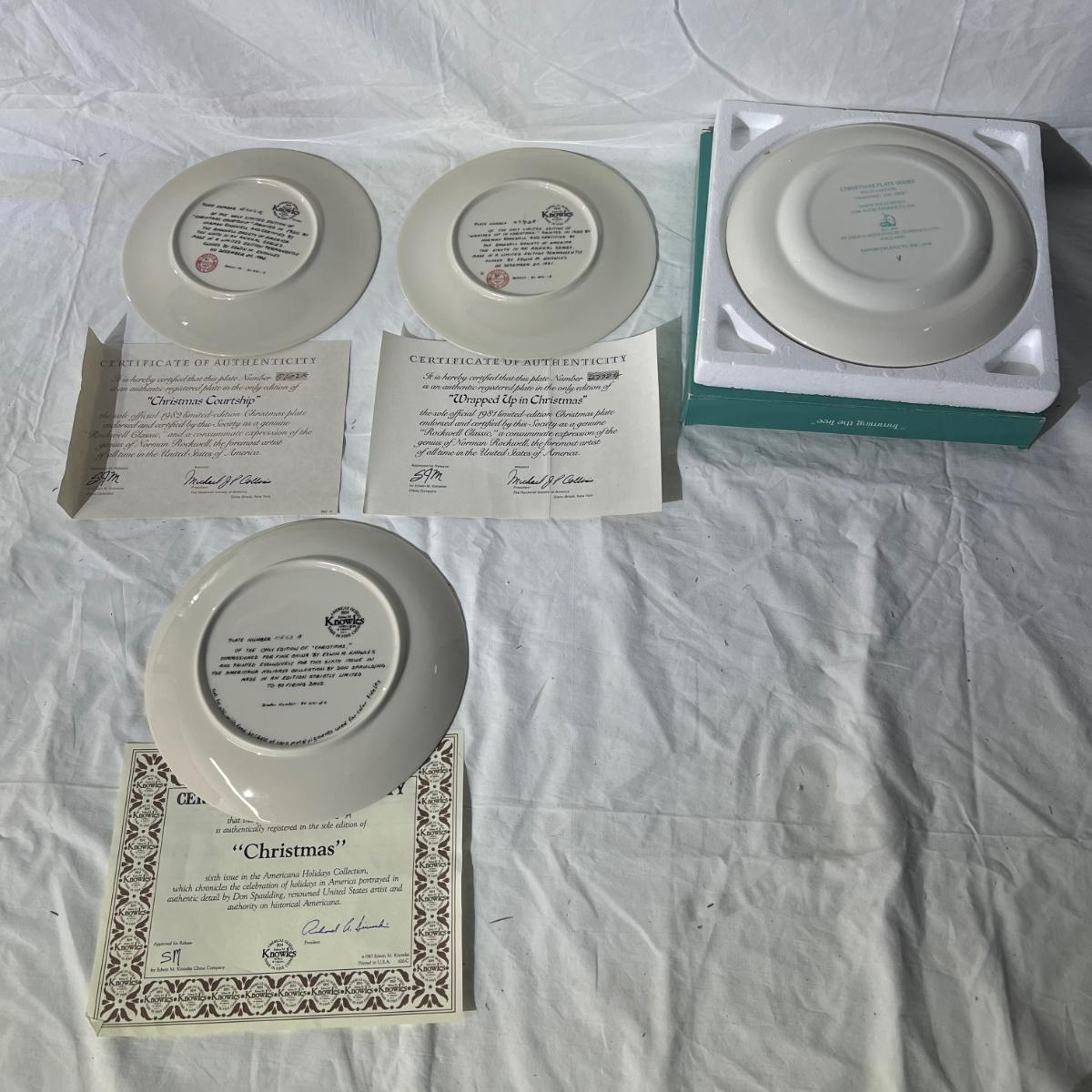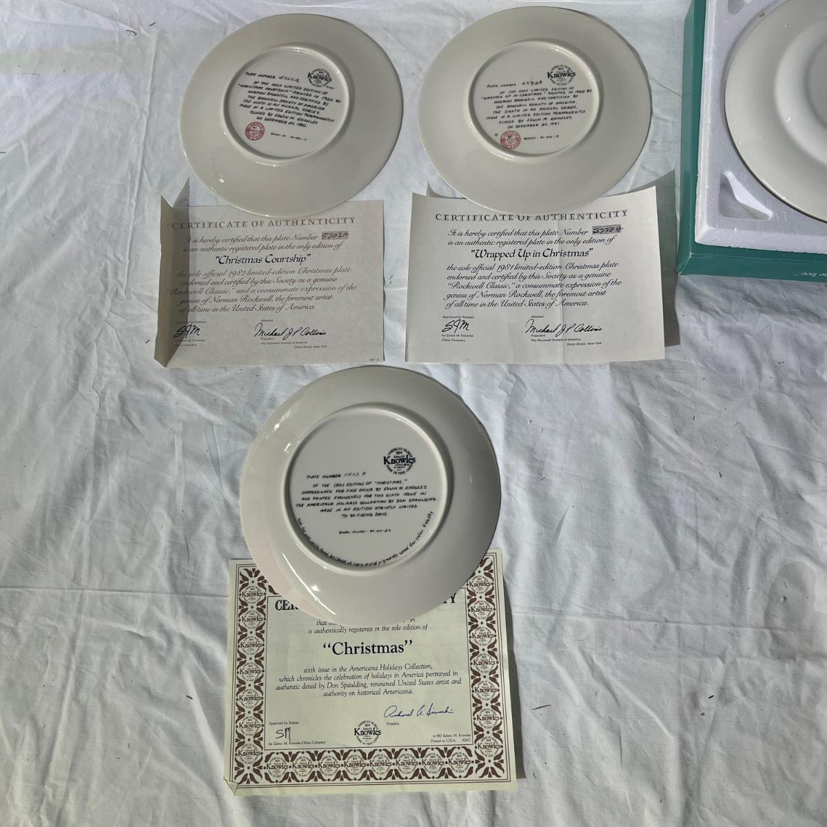 Christmas Variety Collector plates. 4 plate lot including brands like norman rockwell, avon, and knowles. all with boxes and certification of authenticity except the avon plate. All in excellent condition.