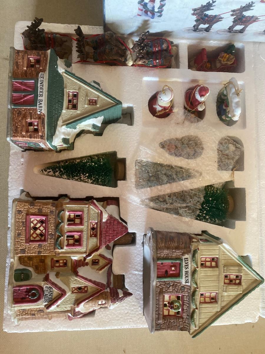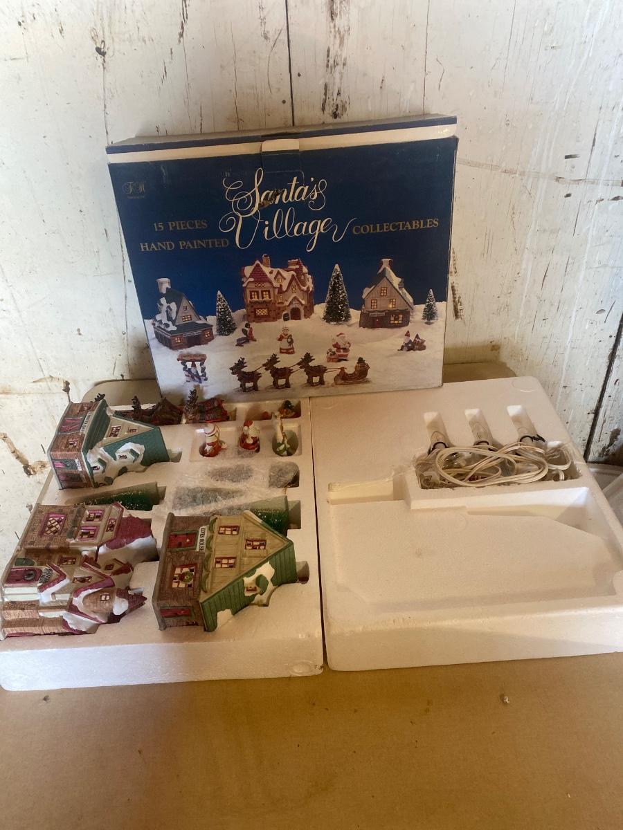 15 piece handpainted Santas village collectible porcelain figurines and lighted houses