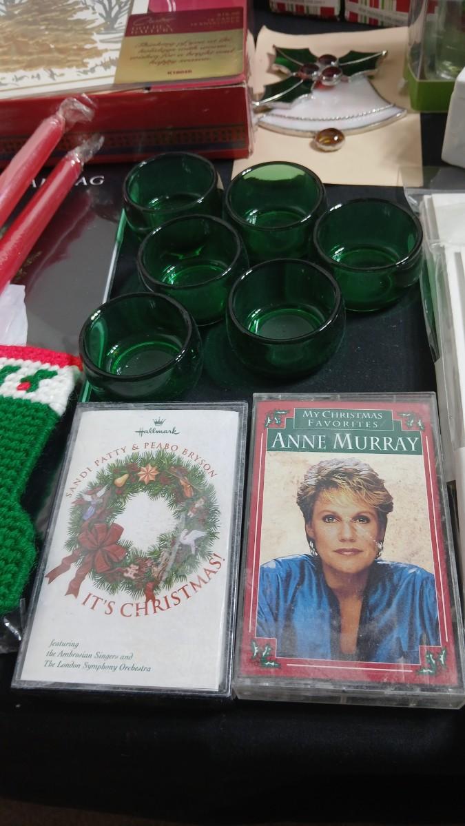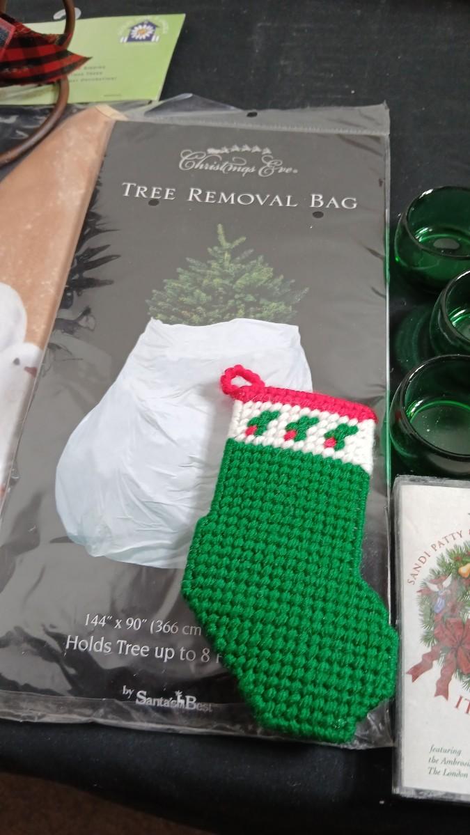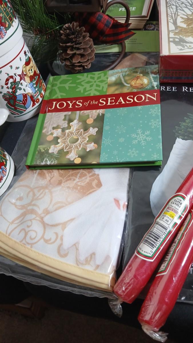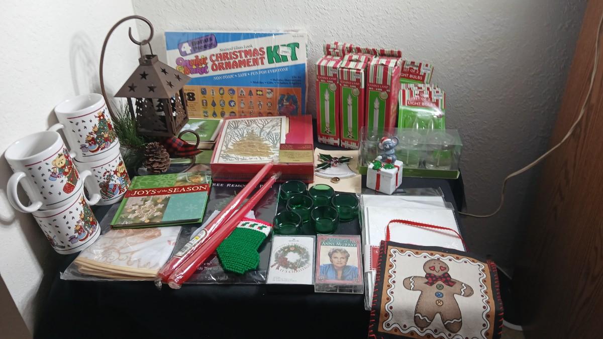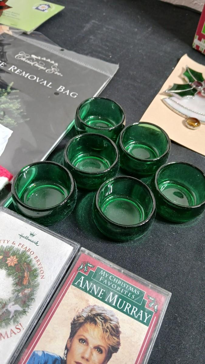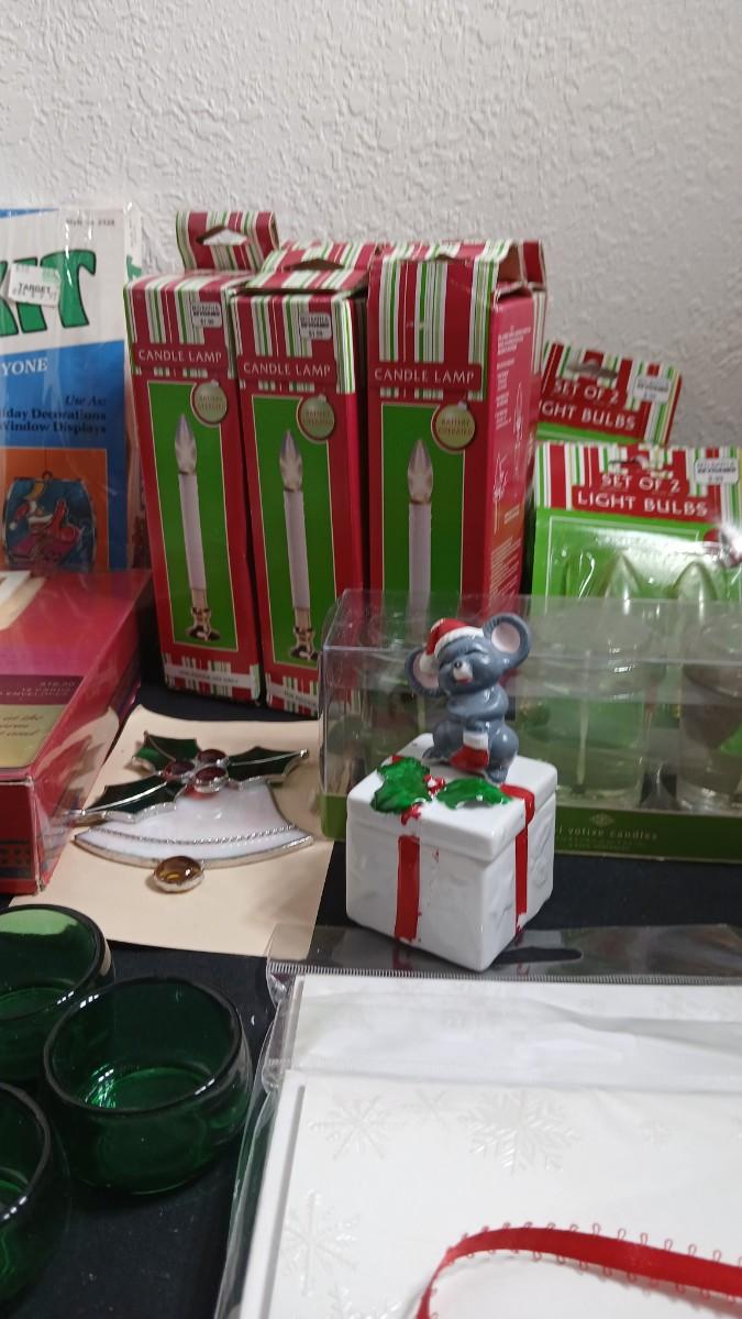 Christmas decorations metal pinecone lantern, mugs, candles, cards, vintage stained glass ornament kit and more