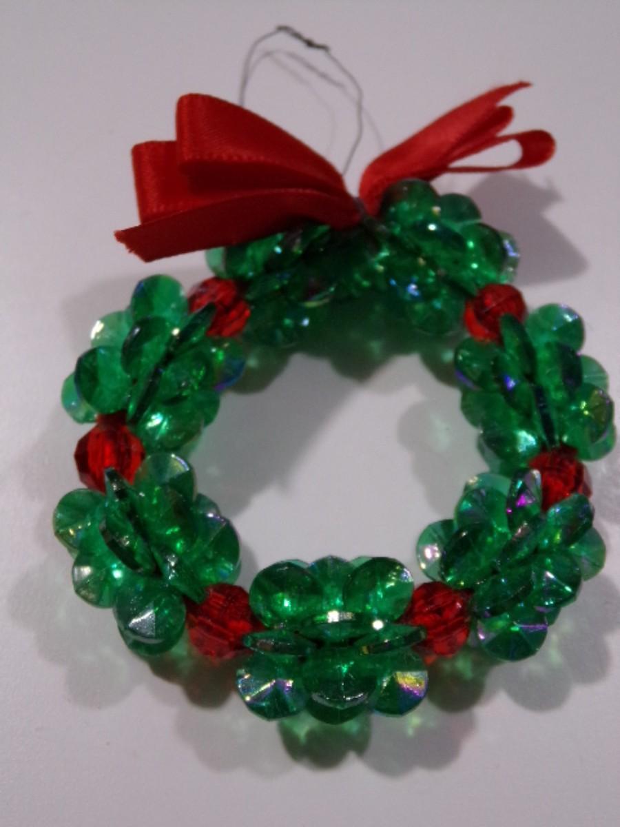 Hand Crafted wired bead Christmas wreath tree ornament