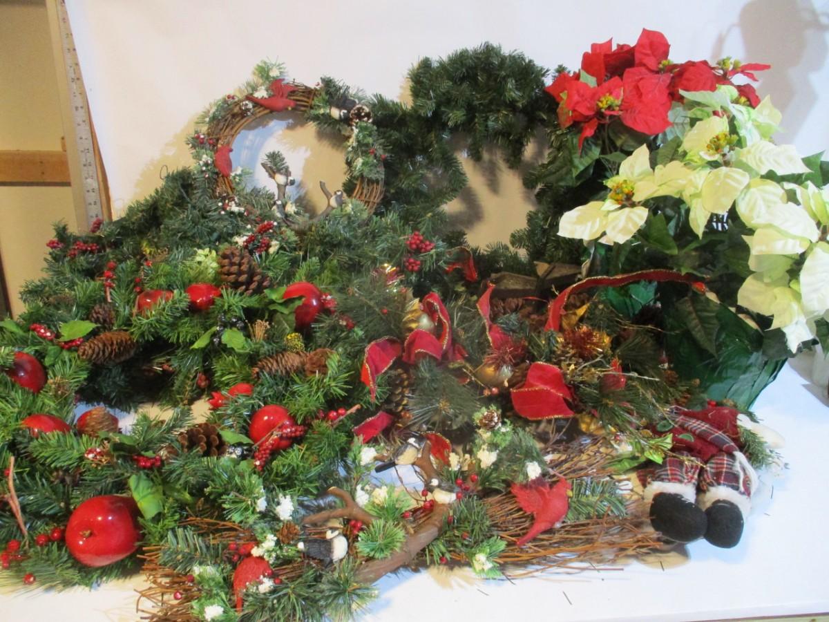 Christmas Wreaths Garland & Poinsettias Lot 26