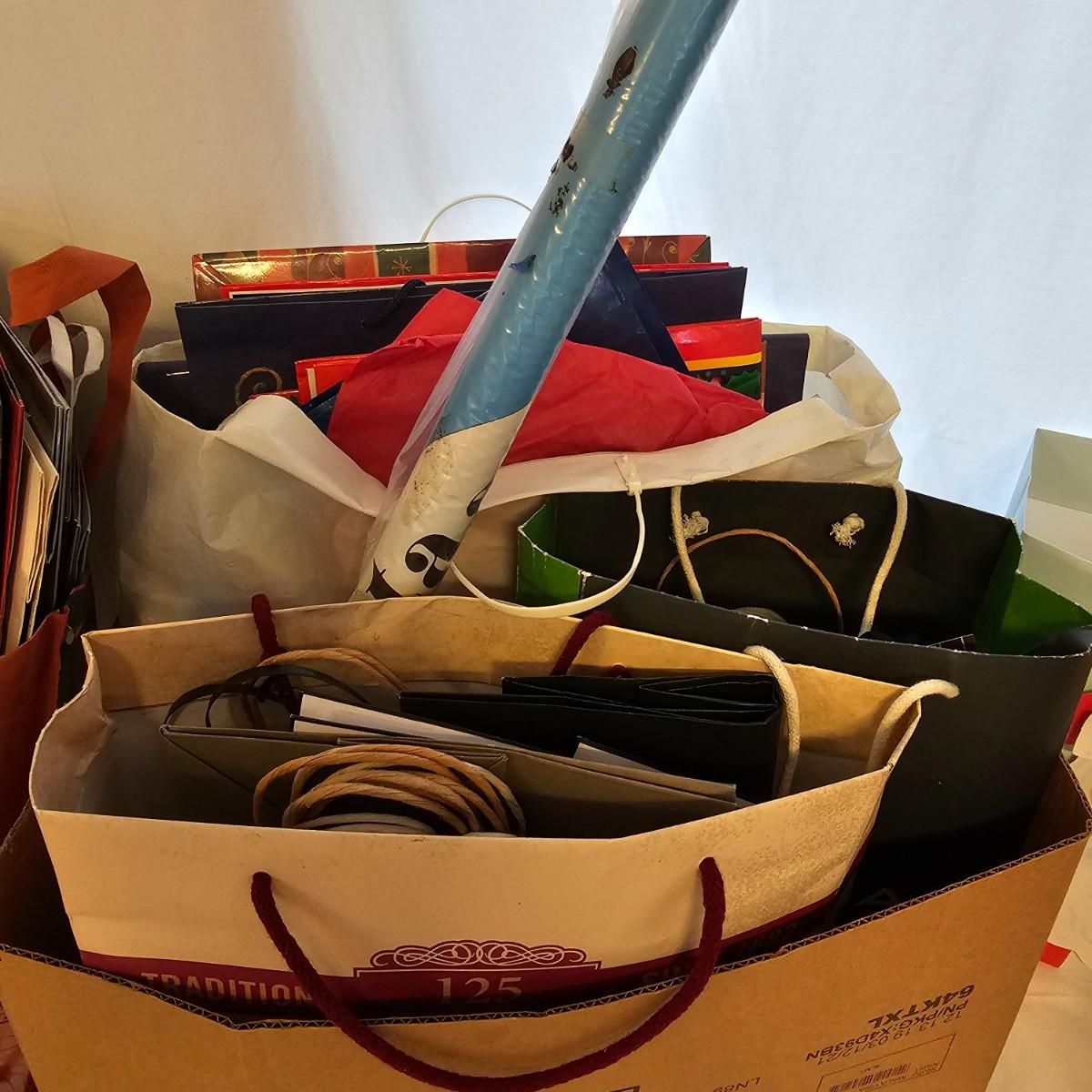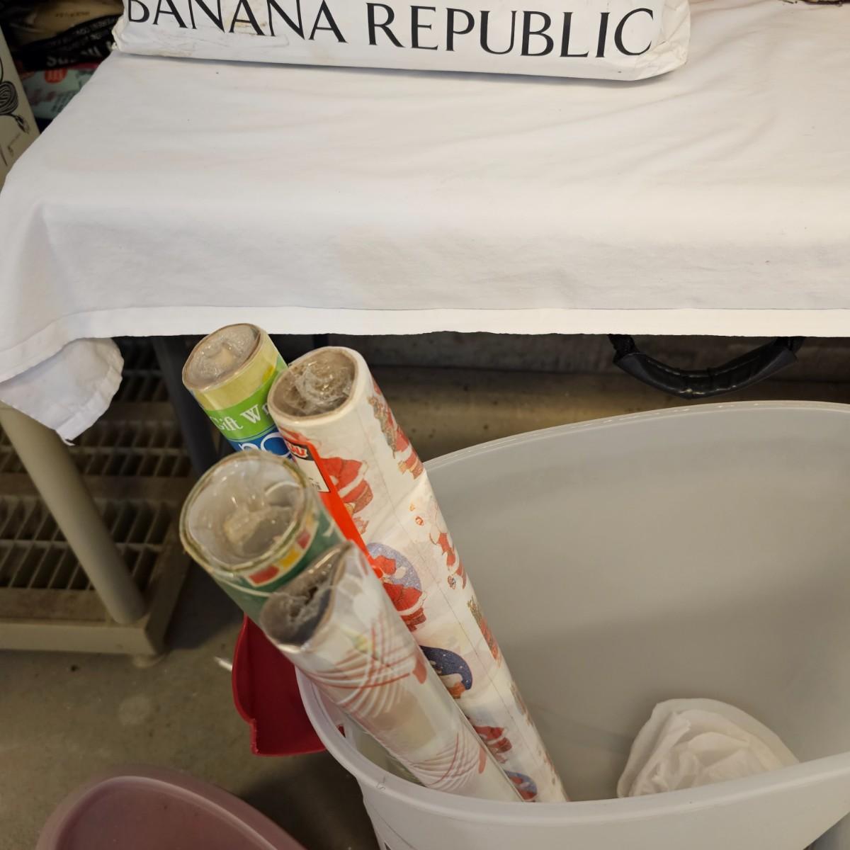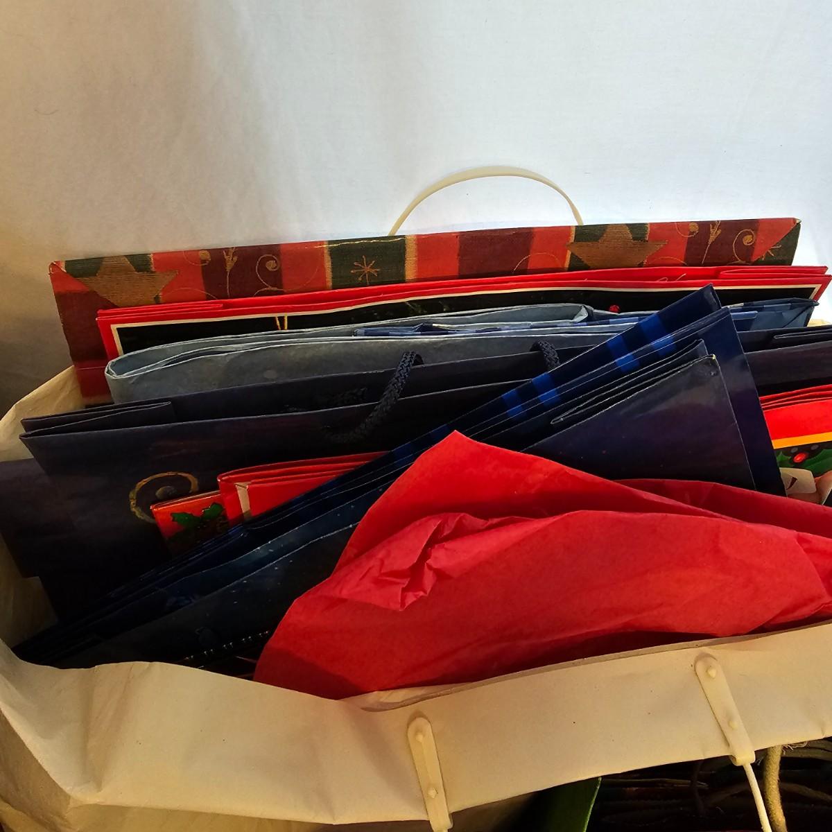 Holiday gift wrap, tissue, boxes, bags and more. Something for every season. Includes storage boxes and tub. See photos for details. Local pickup only.