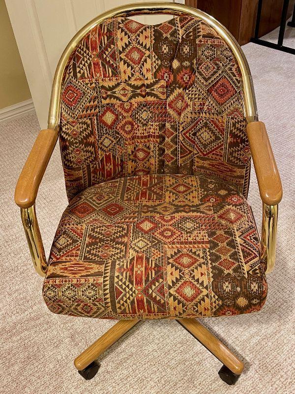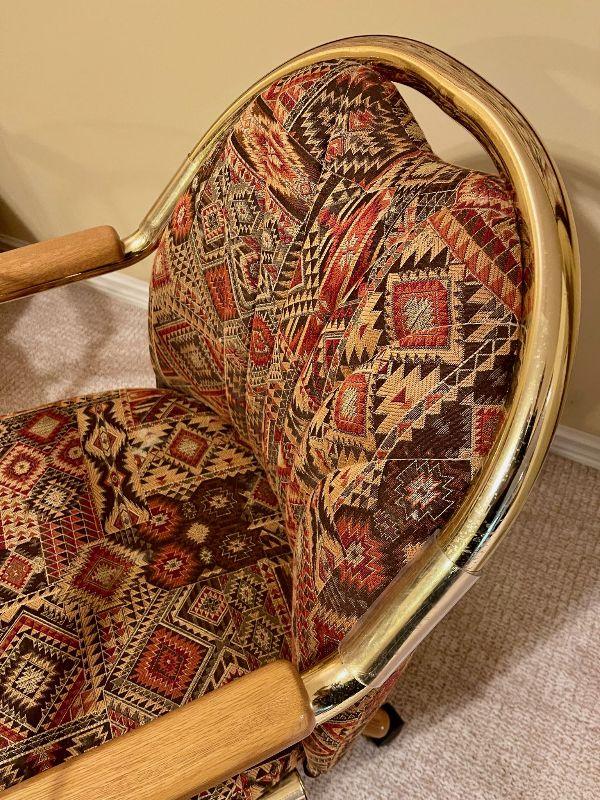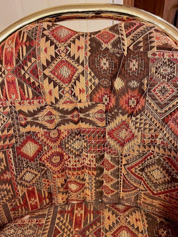 Interesting heavy woven (not printed) upholstery in perfect condition. No stains, rips, holes.