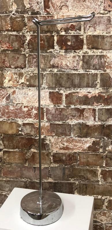 An elegant way to dispense toilet paper with this chrome holder...some use...