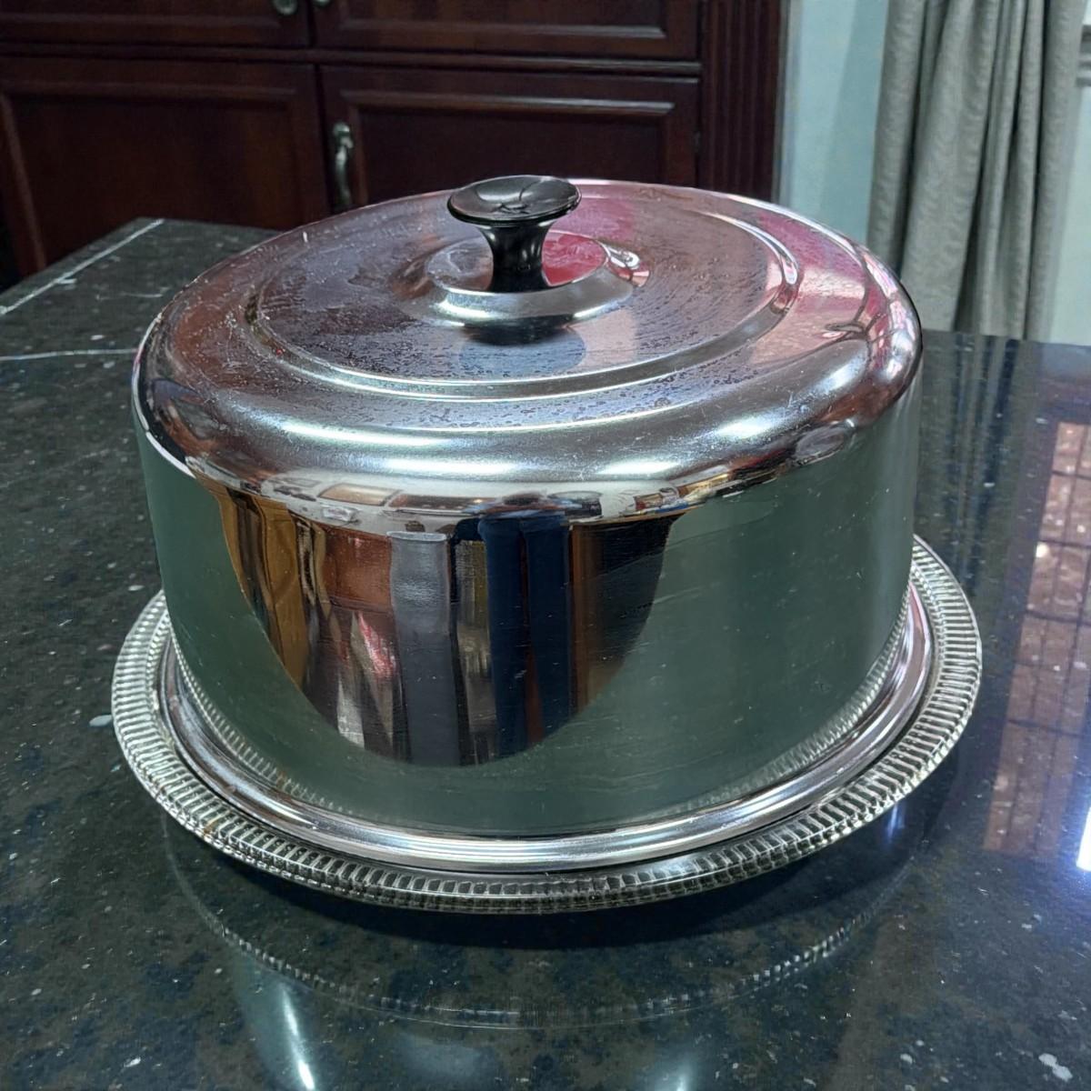 Chrome Domed Cake Cover with Footed Glass Plate