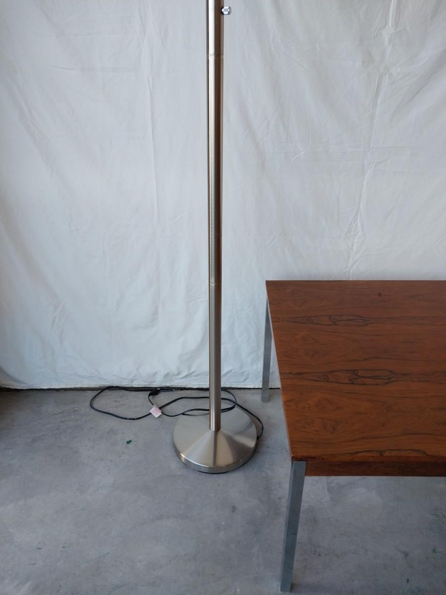 CHROME END TABLE WITH WOODEN TOP AND CHROME FLOOR LAMP