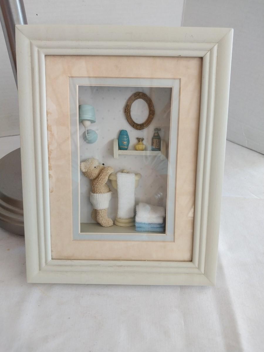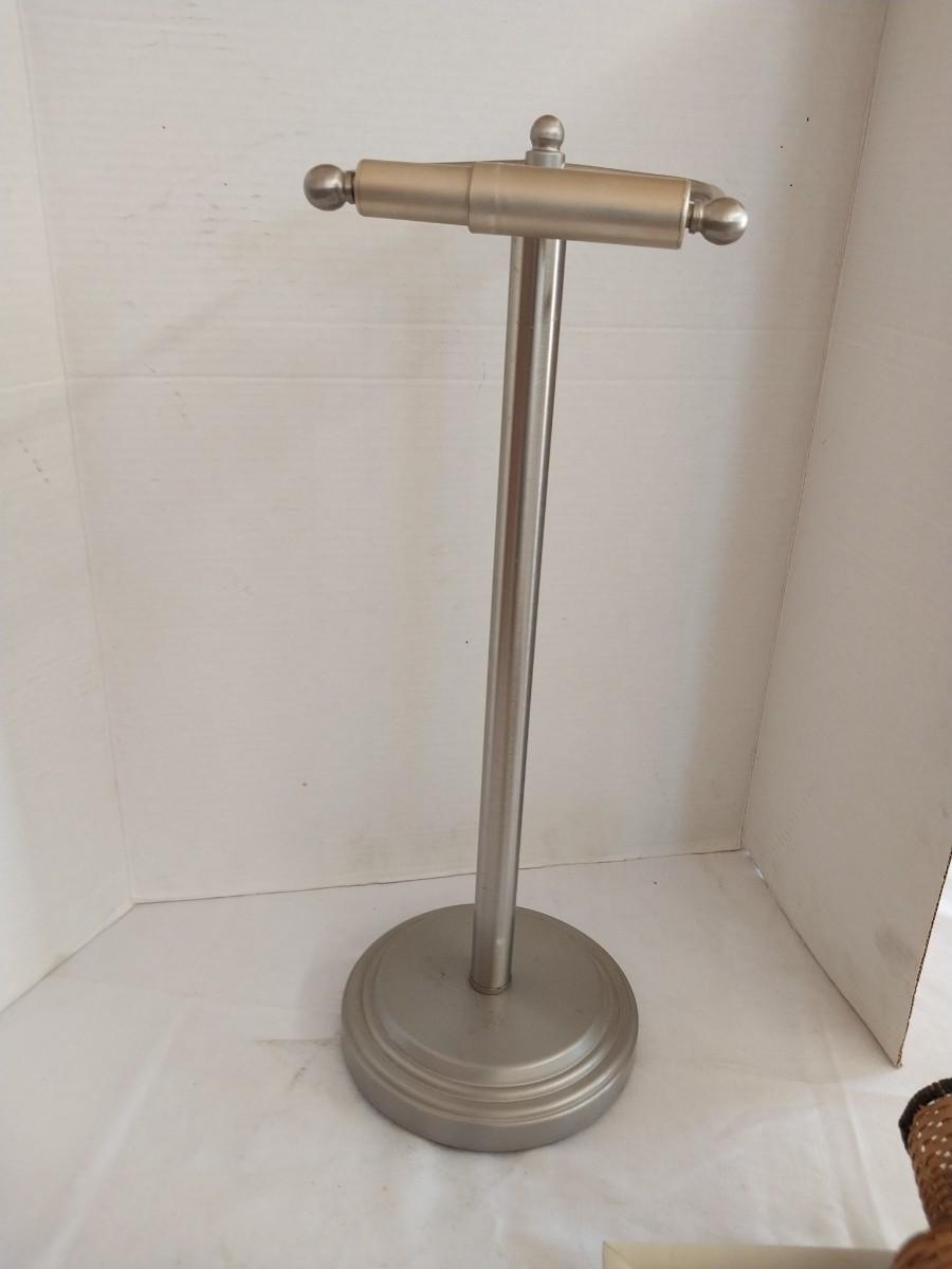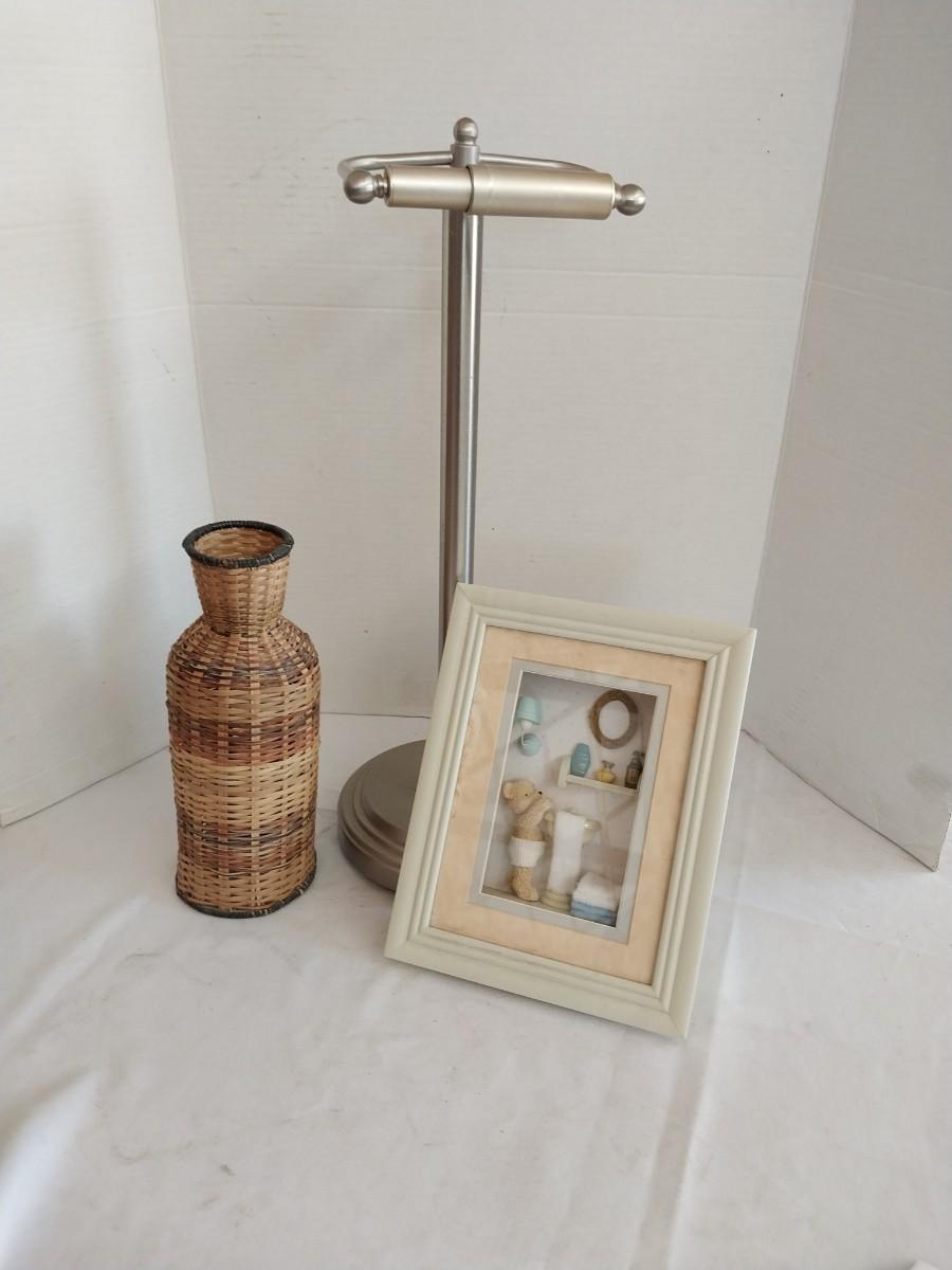 CHROME FLOOR STAND TOILET PAPER HOLDER AND BATHROOM THEMED SHADOWBOX
