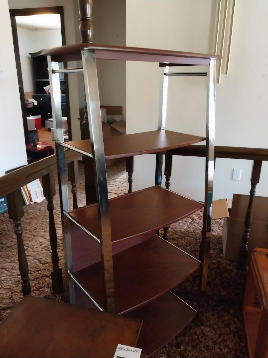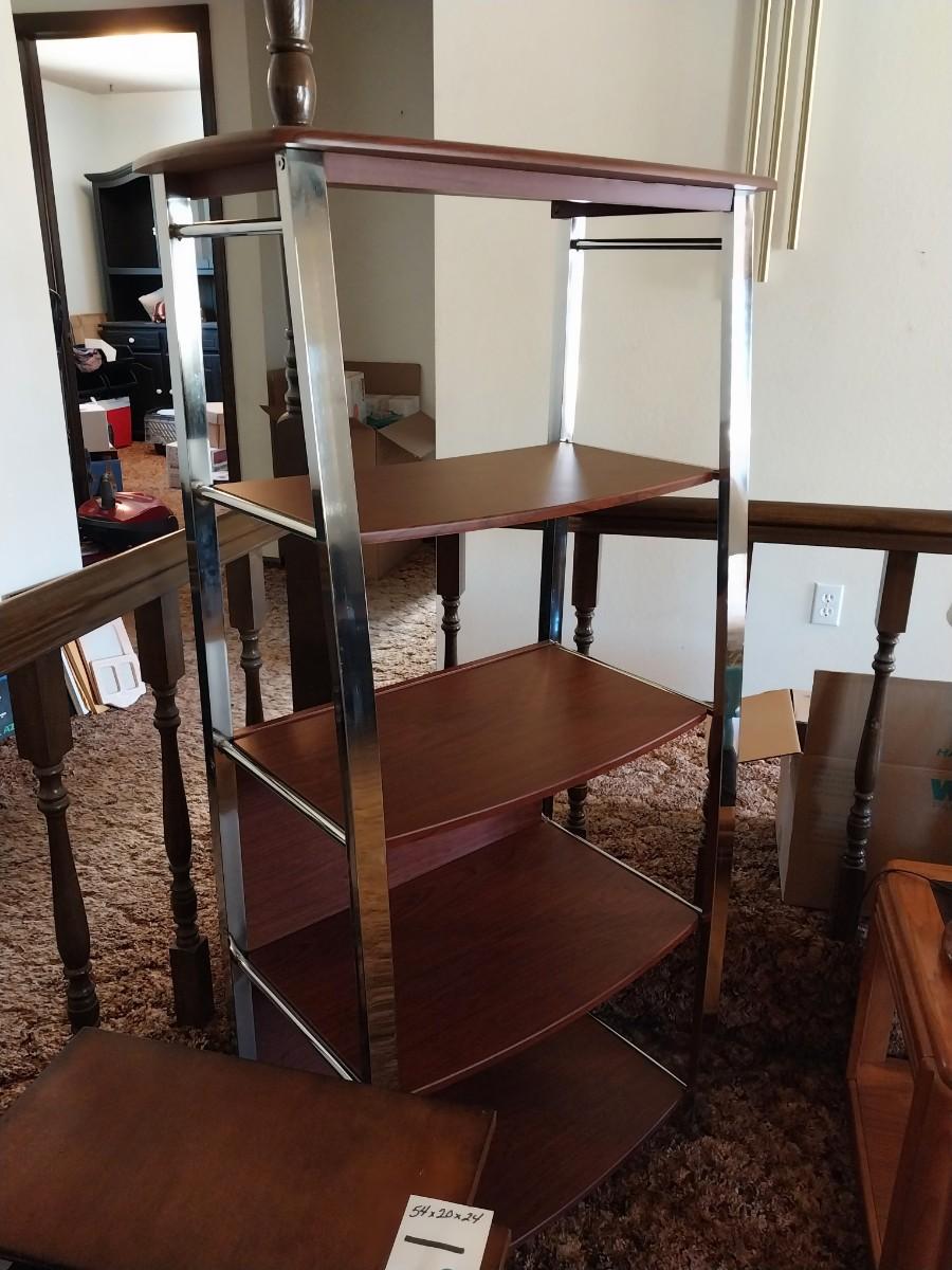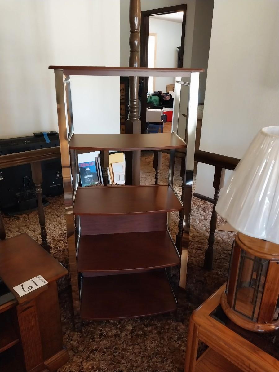 CHROME FRAMED 4 TIER SHELF WITH BROWN METAL SHELVES