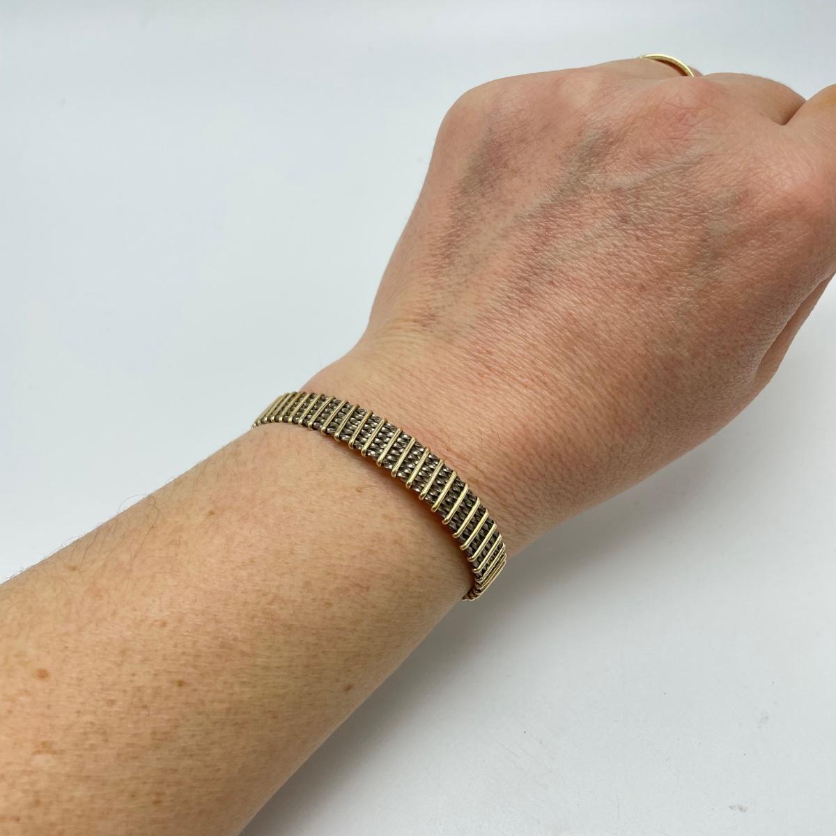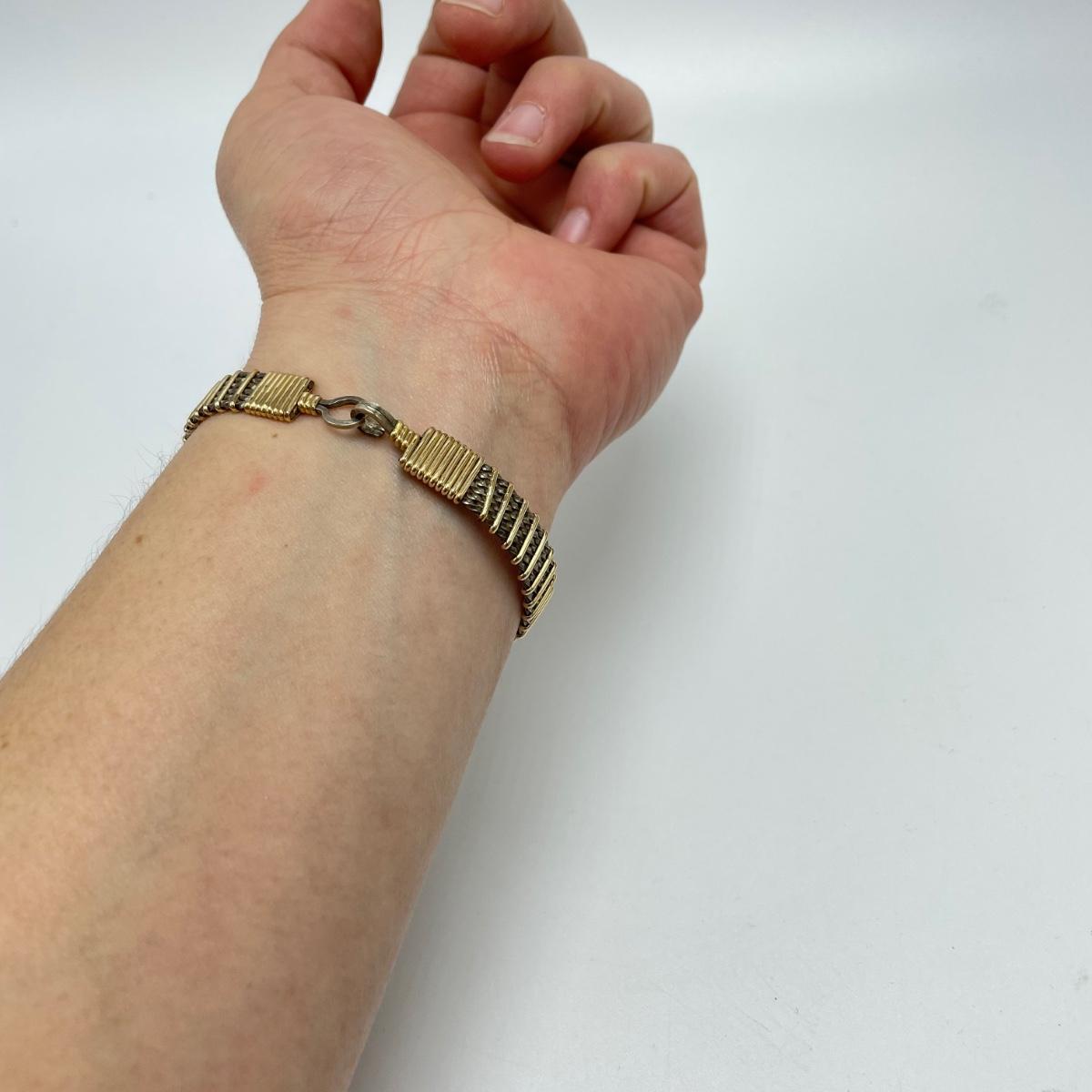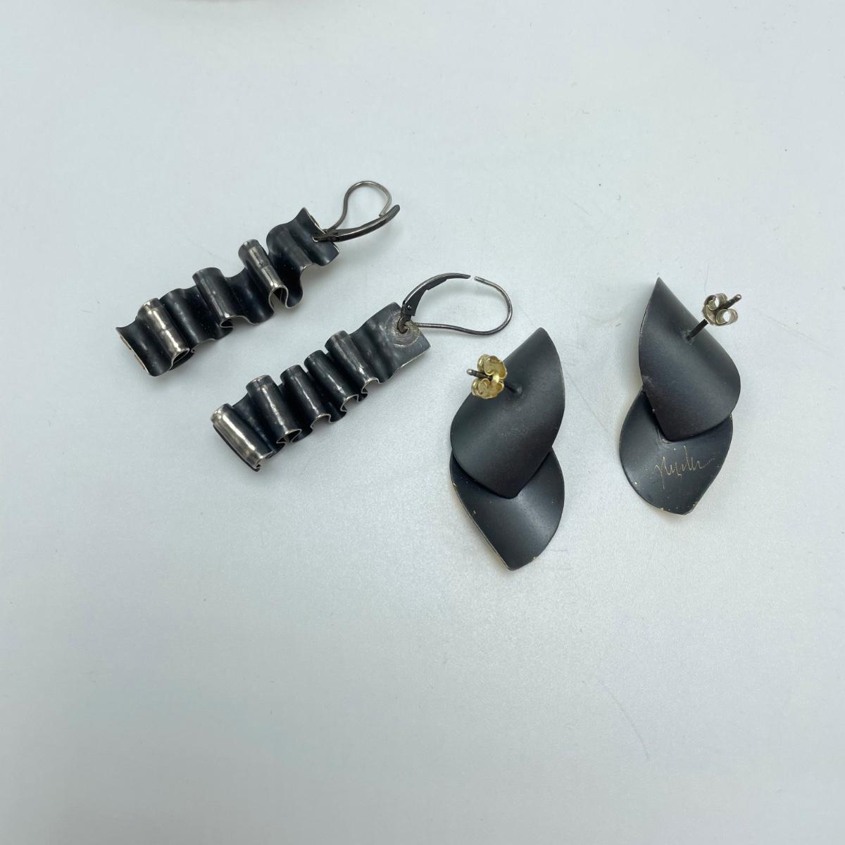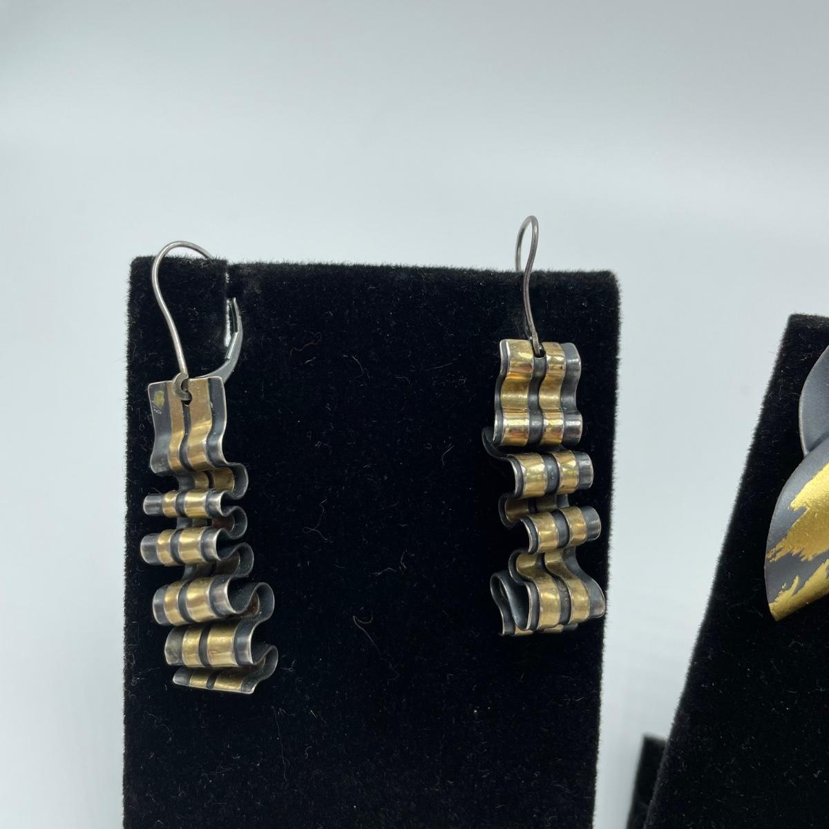 One pair of signed earrings with two other pairs and a metal bracelet. All materials appear to be metal and no other markings were found. The bracelet is stiff and holds its shape well. The hoop earrings do not connect or stick closed. See images. Shipping available.