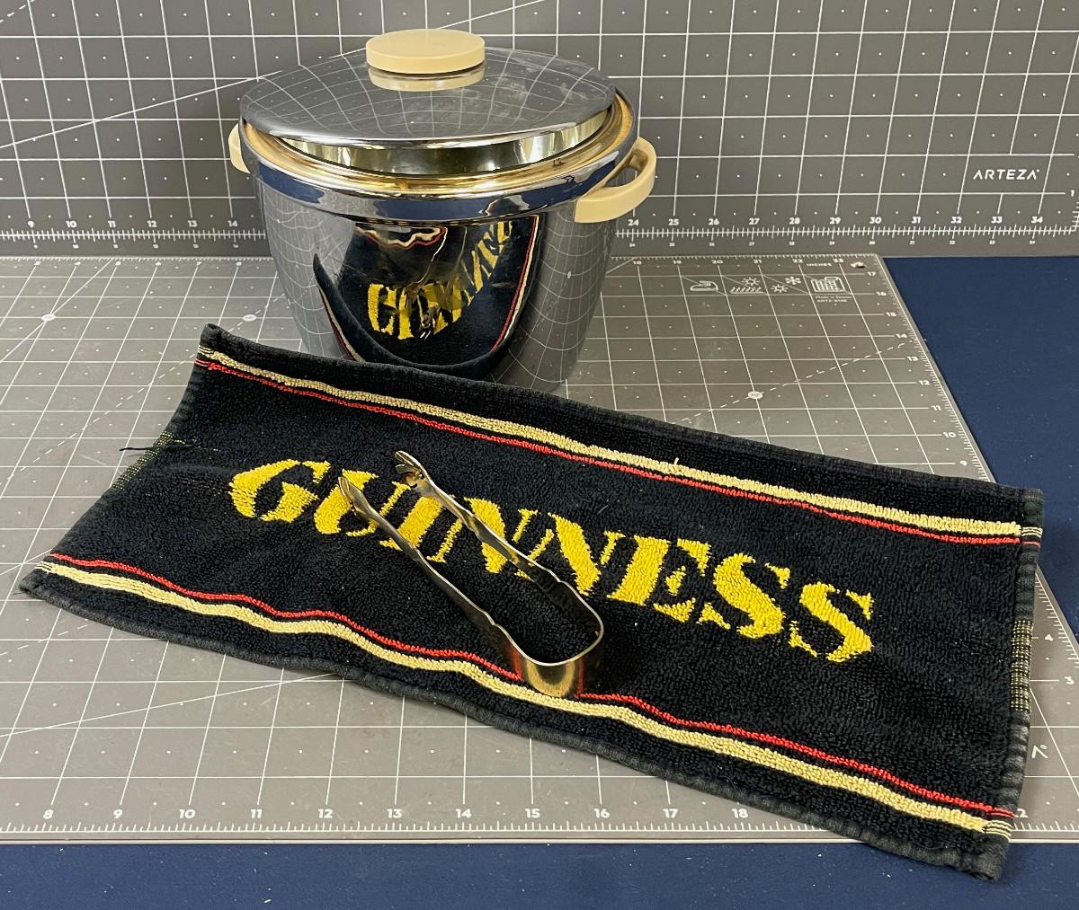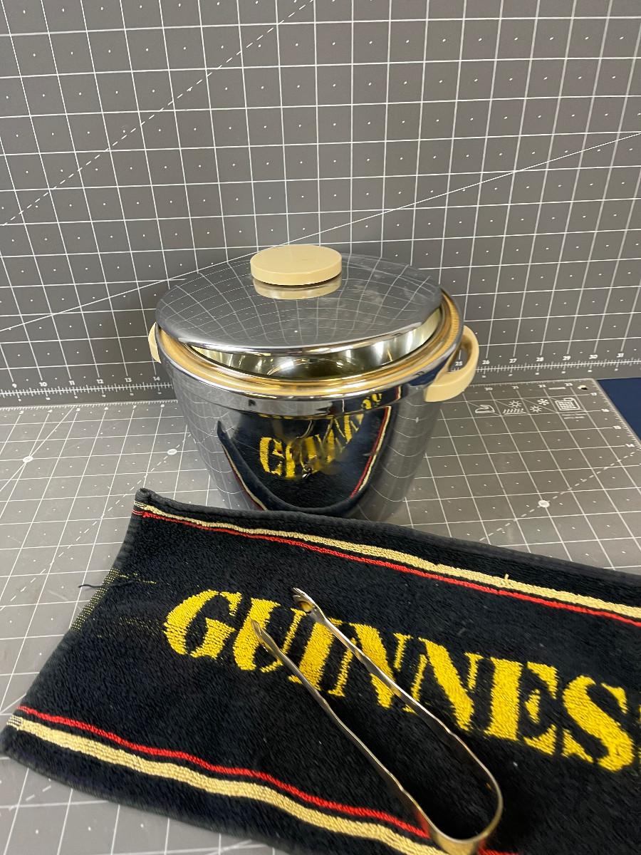 Chrome Ice Bucket with Guinness Towel and Tongs