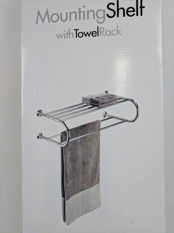 Chrome Mounting Shelf with Towel Rack, Home Bath Collection - New