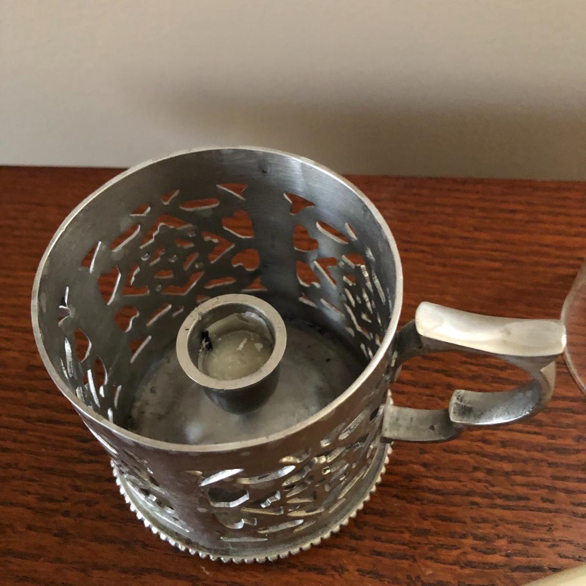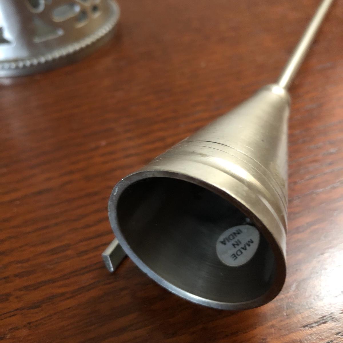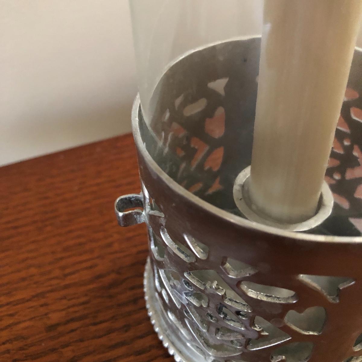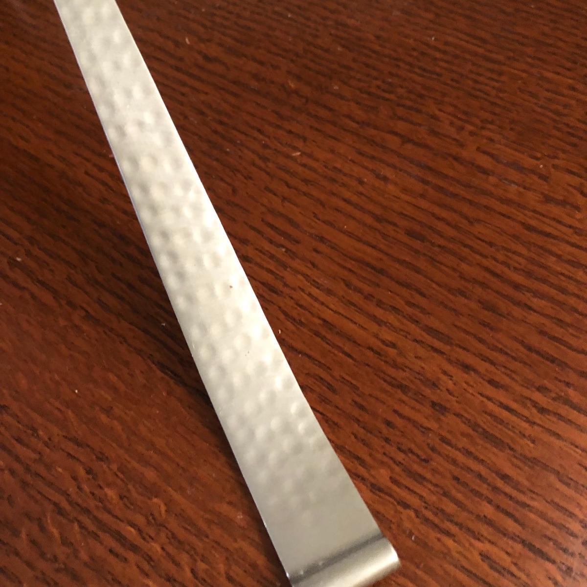 This lot includes a square beveled tray which measures 17.5” x 17.5”. It appears to be made of chrome. The pewter like candle holder with accompanying snuffer is 3.5” in diameter and 9.5” tall. The additional snuffer has a hammered pewter-style look. And finally, the Pier One knobbed pie server and knife is stainless steel, from India. Shipping Available.