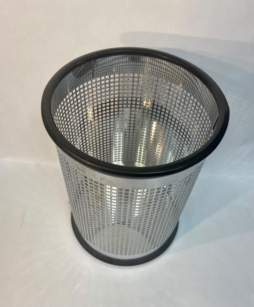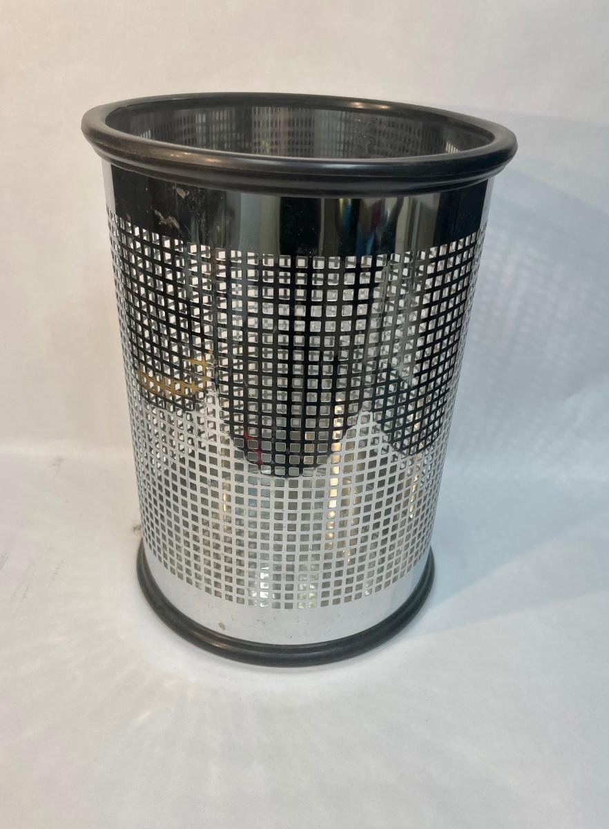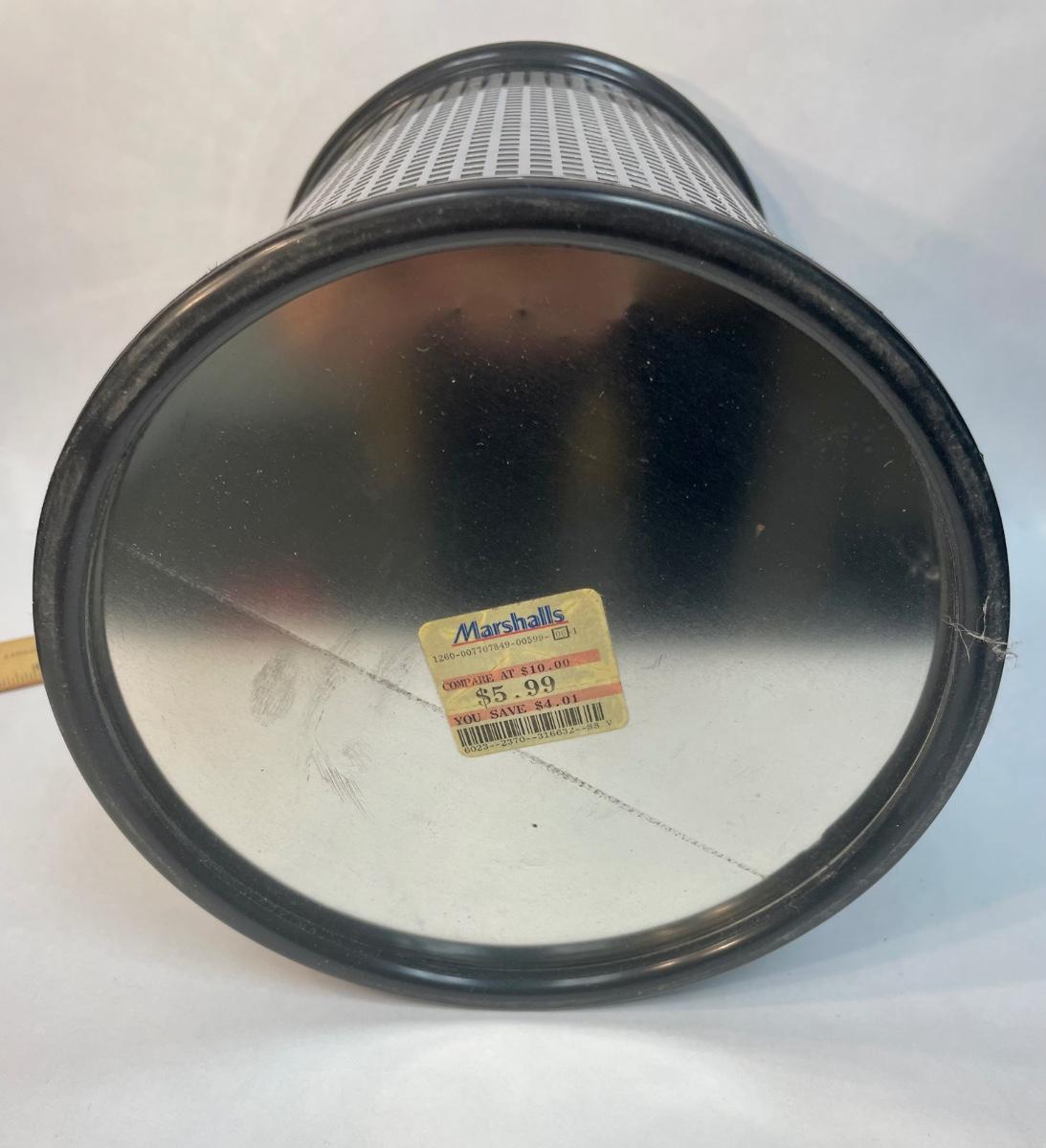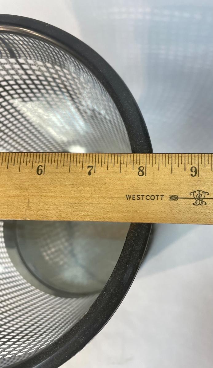 Has a rubber top and bottom rim. Approx. 11" tall, 8" across at the top. Near-new condition.