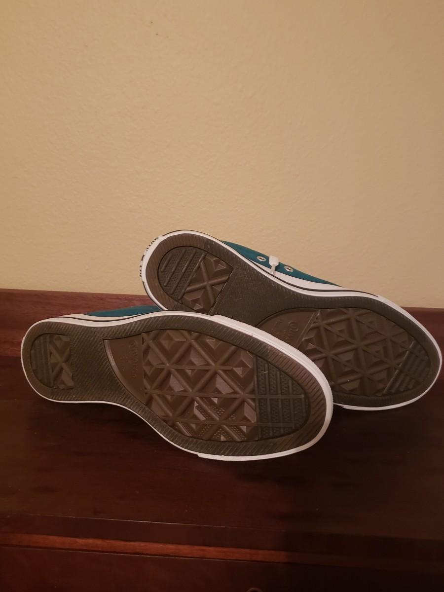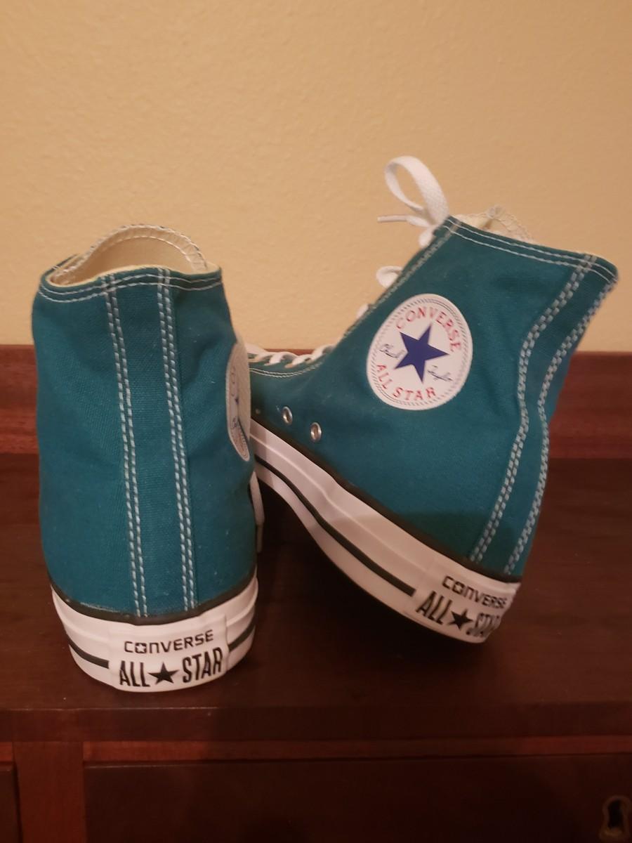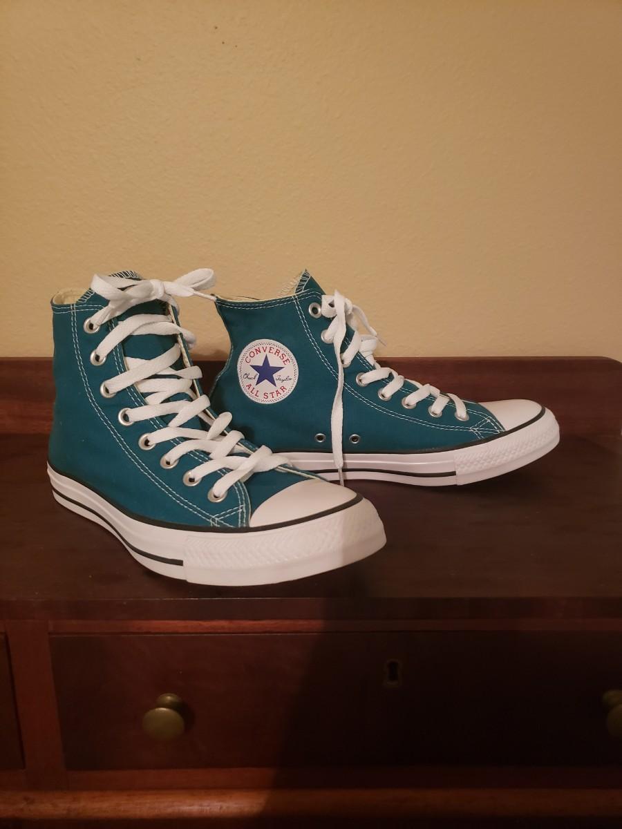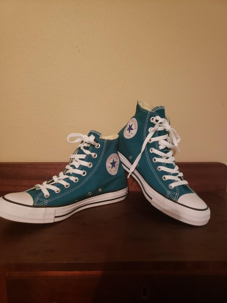Pair of green Chuck Taylor Converse Allstars. Men's size 7. Women's size 9