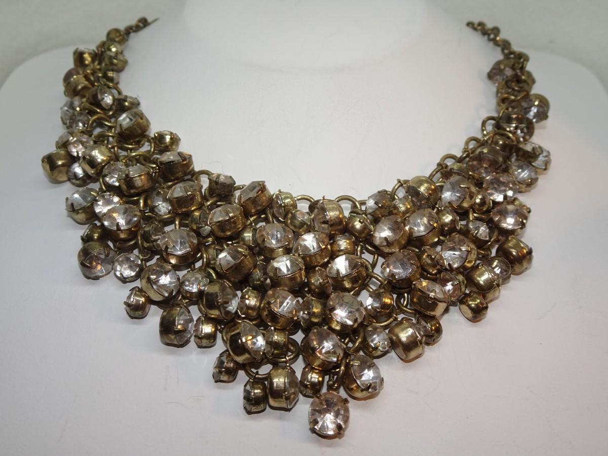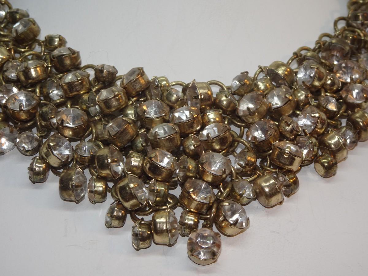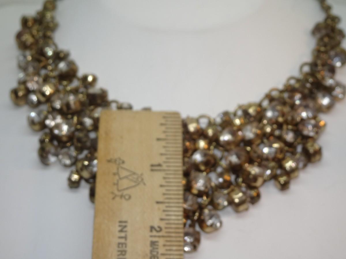 Chunk Cluster Rhinestone Gold Tone Necklace