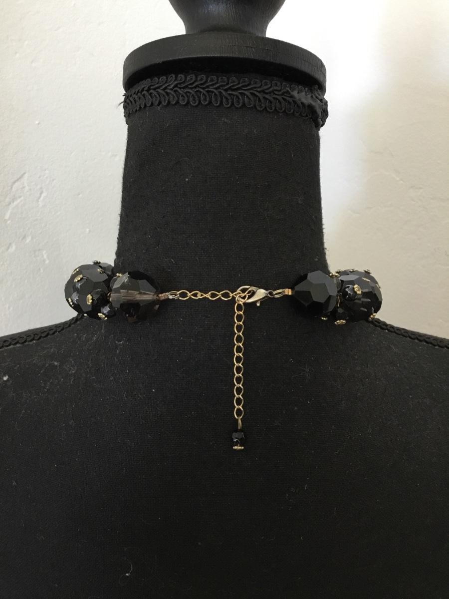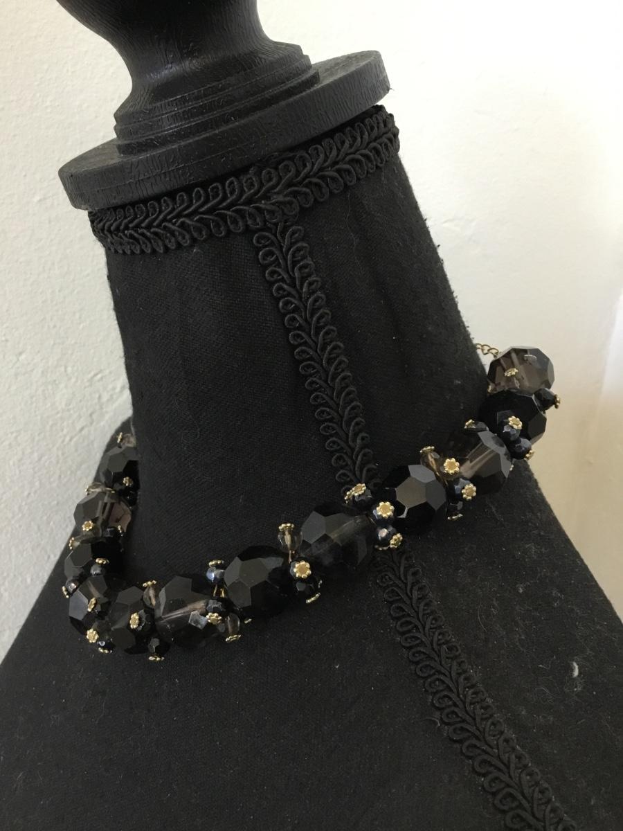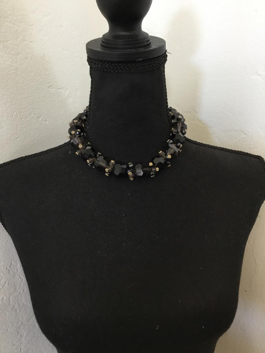 Chunky black & smoky faceted glass or crystal beaded chunky statement collar necklace