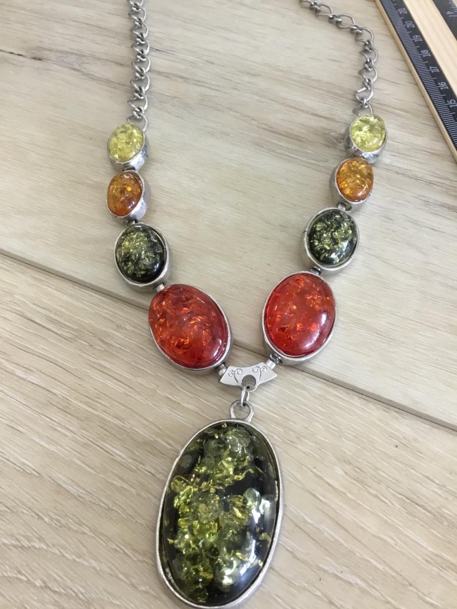Chunky chandelier, golden honey, green root beer, amber dingle, Silvertone statement necklace