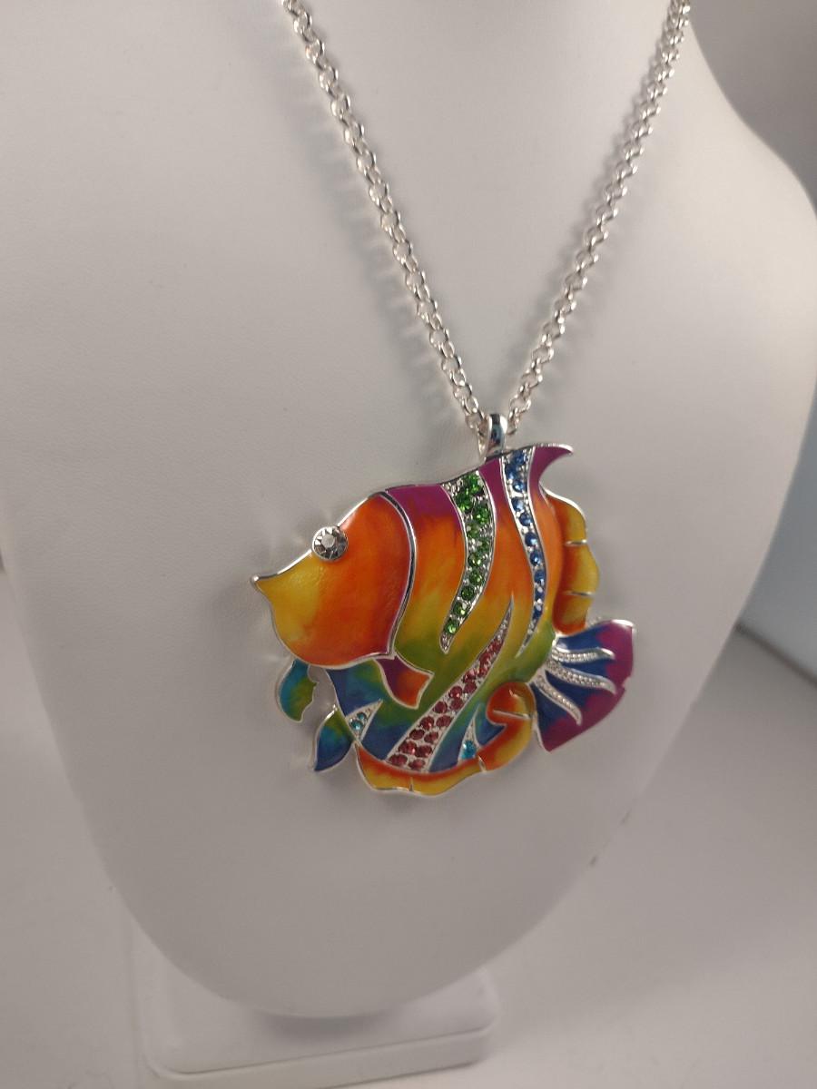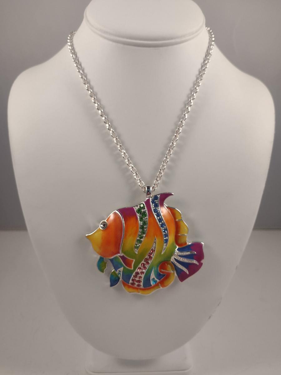 Chunky Enameled Fish Pendant with Necklace (#68)