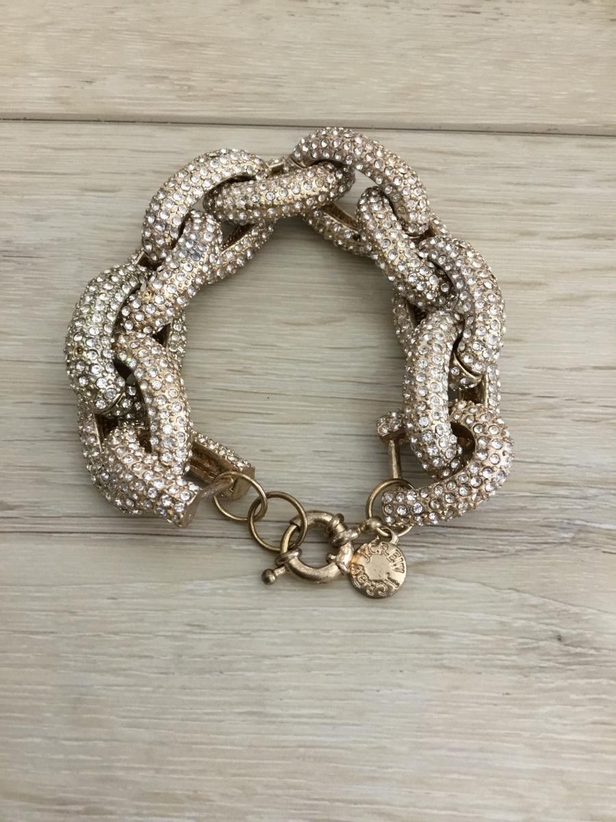 Chunky gold, toned, rhinestone covered J.crew toggle bracelet