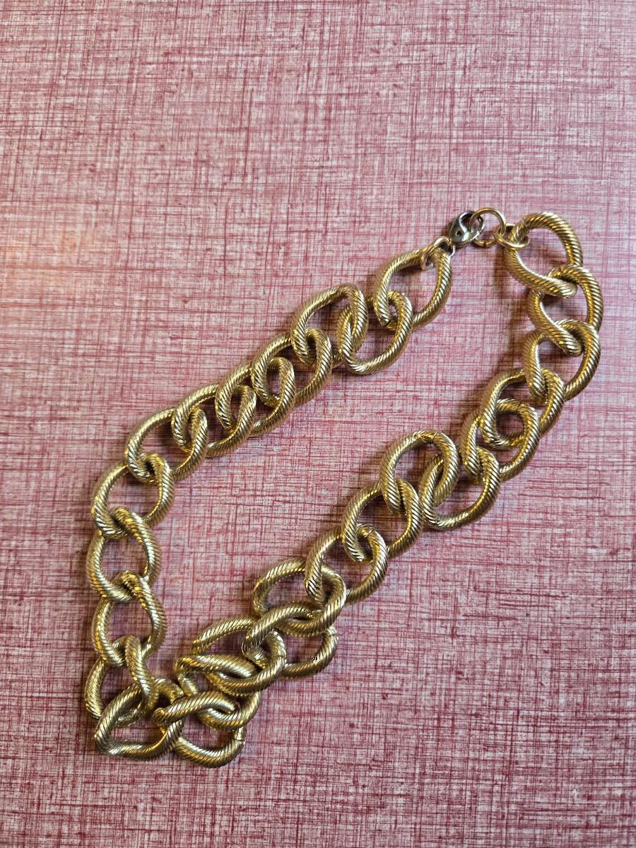 8" goldtone link necklace, really cute, not too heavy,no markings