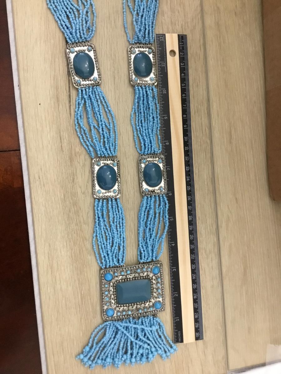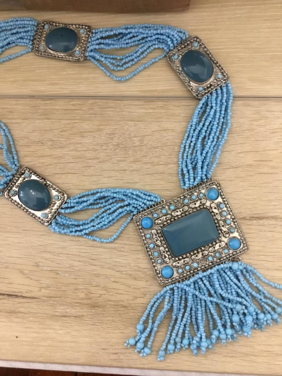 Chunky LARGE turquoise tribal necklace - big Vintage beaded Jewelry - Hippie style indian design necklace