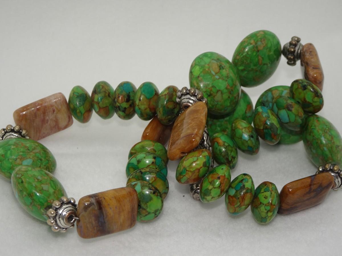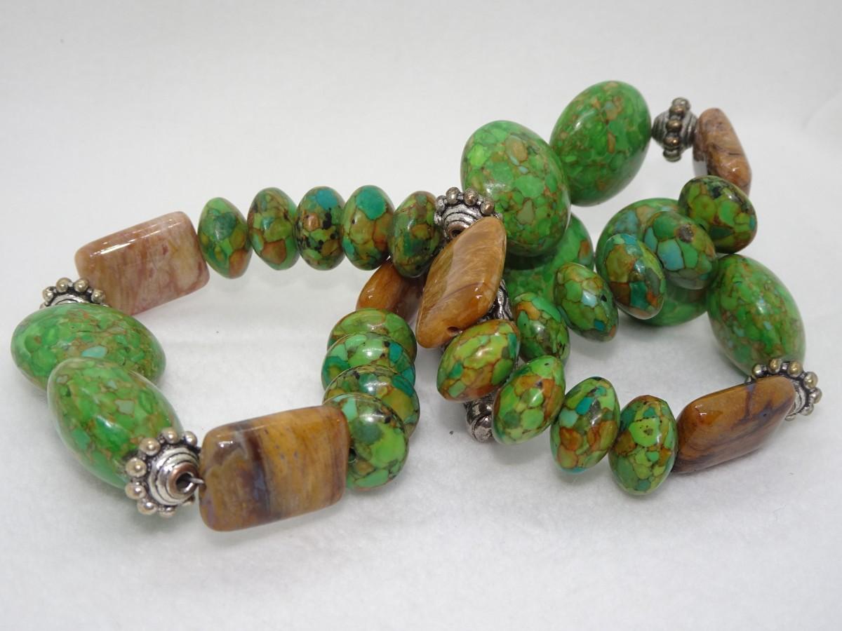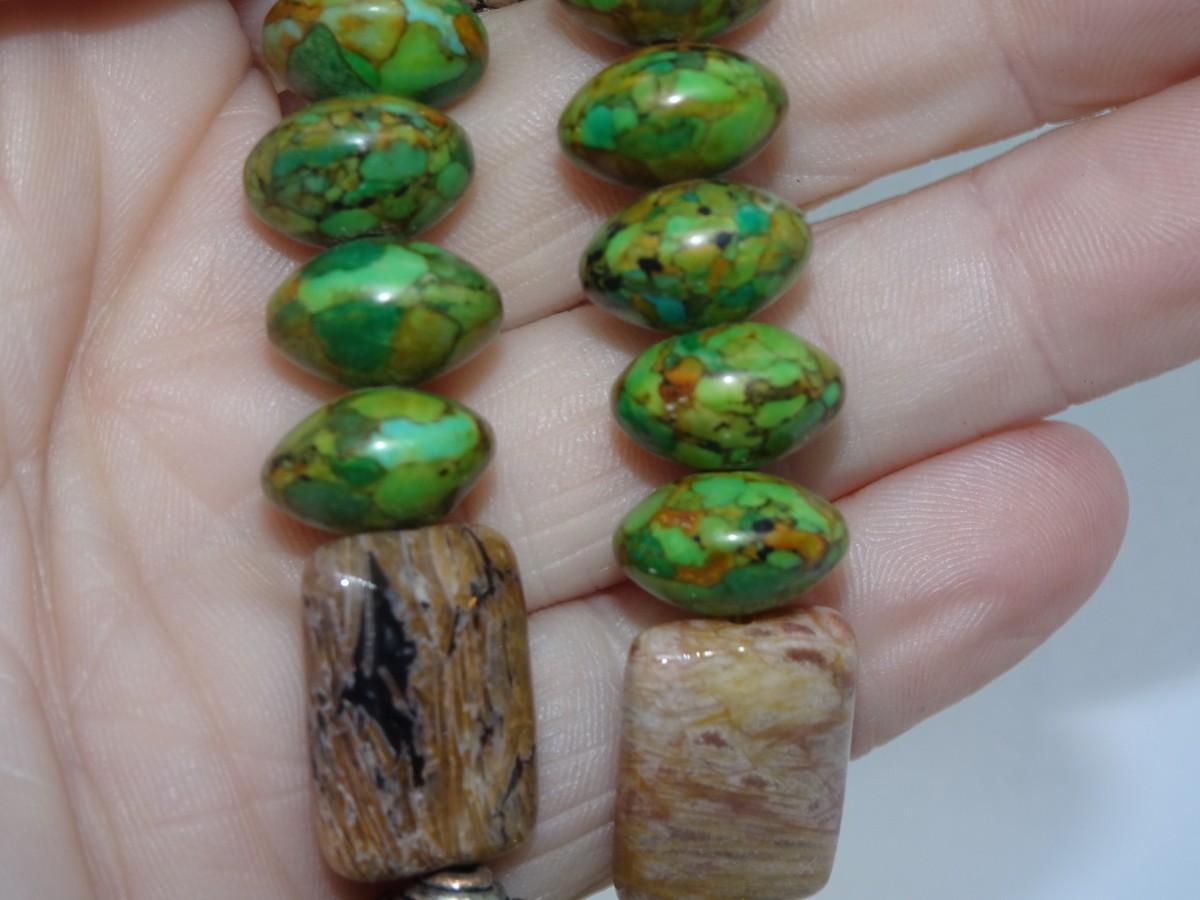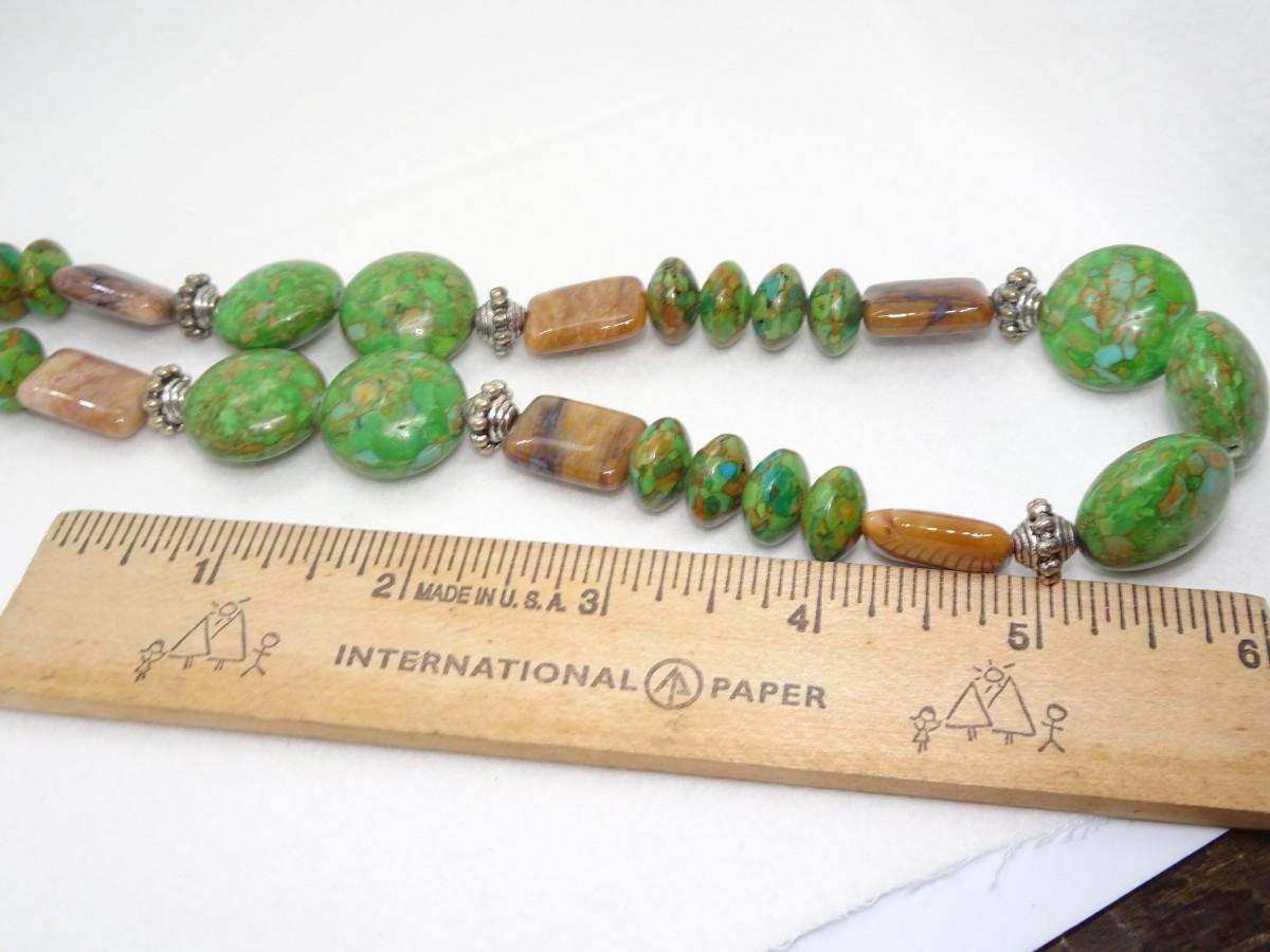 Chunky Lime Green Turquoise & Tigers Eye colored Necklace, Silver Accent Beads