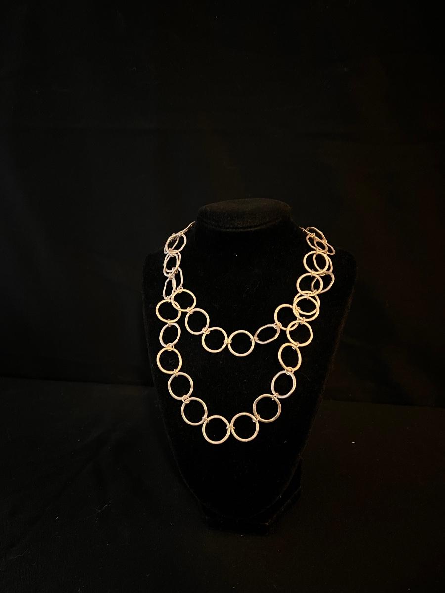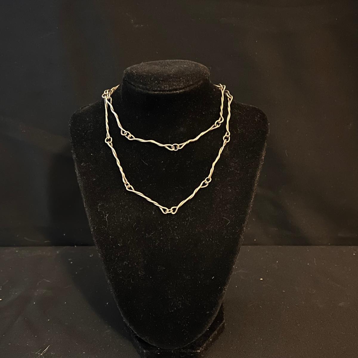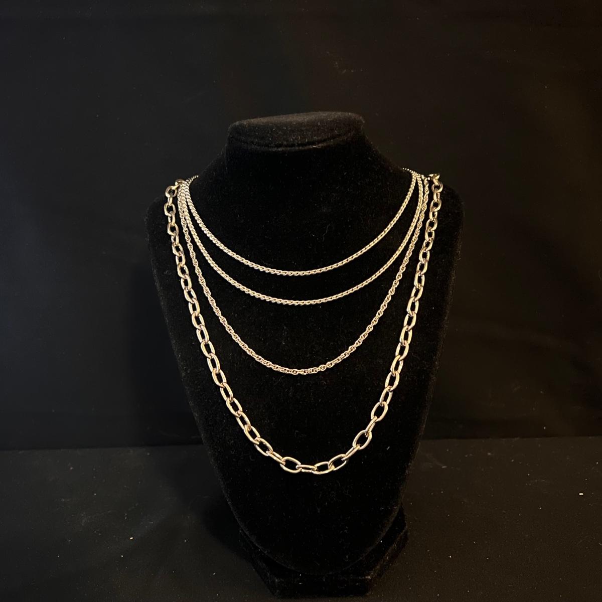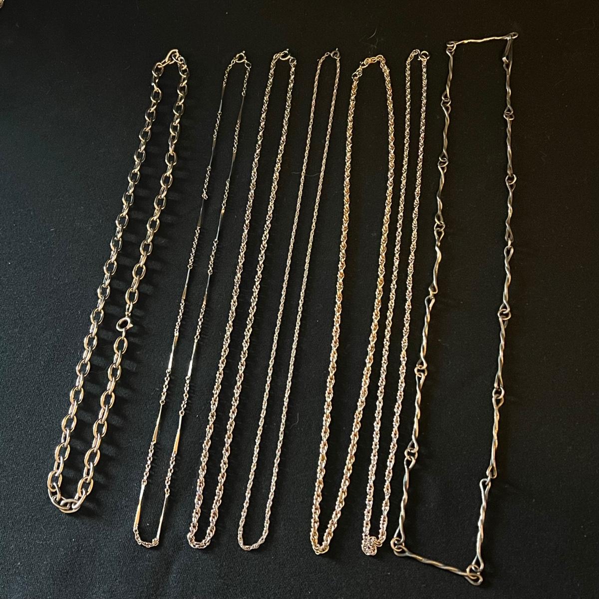 This lot includes ten plus silver necklaces of various sizes, one bracelet, and one ring. The largest necklace measures 41” long and the smallest necklace (the one with multiple chains) measures 15” long. The bracelet measures 6.75” long and clasps together nicely. Please see photos for details. All sales are final. No returns or refunds. Please bid accordingly. Shipping available.