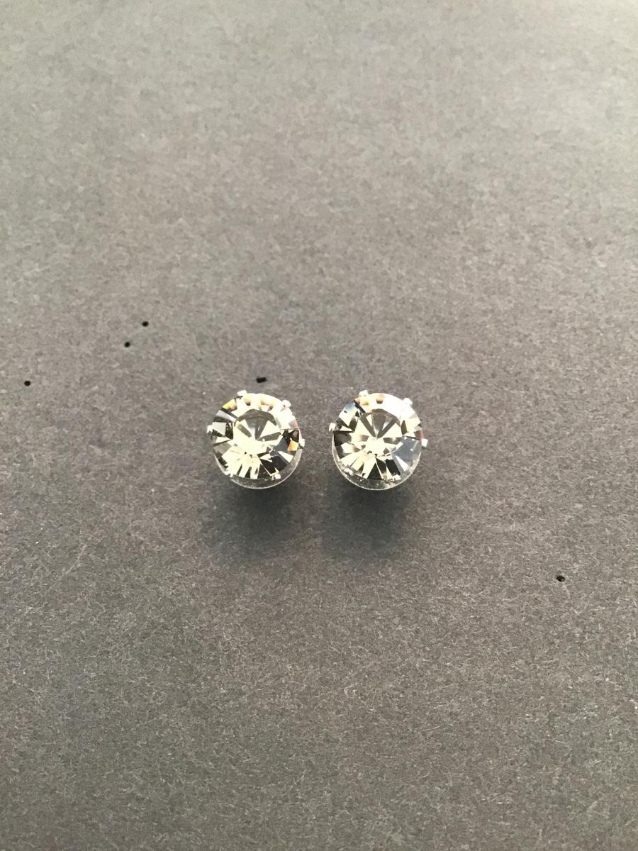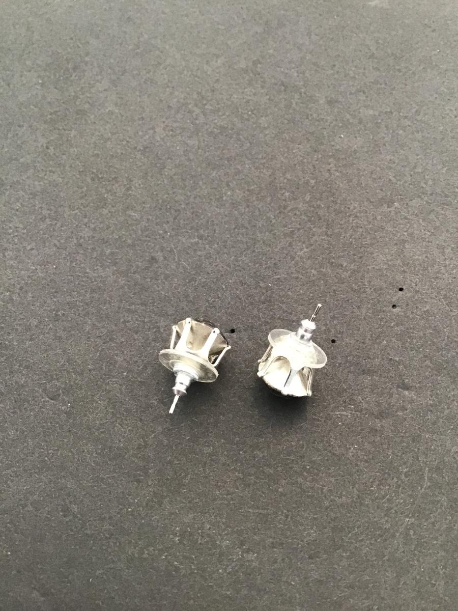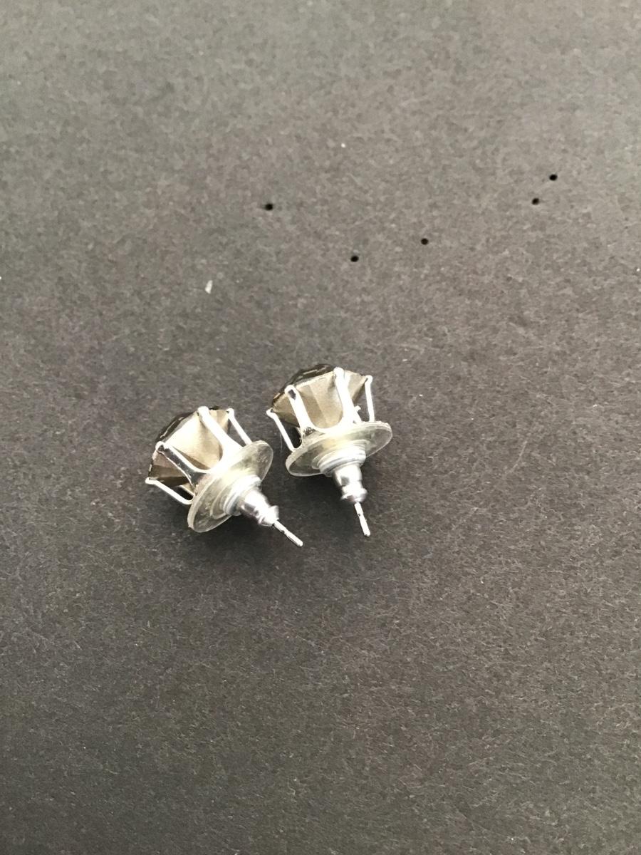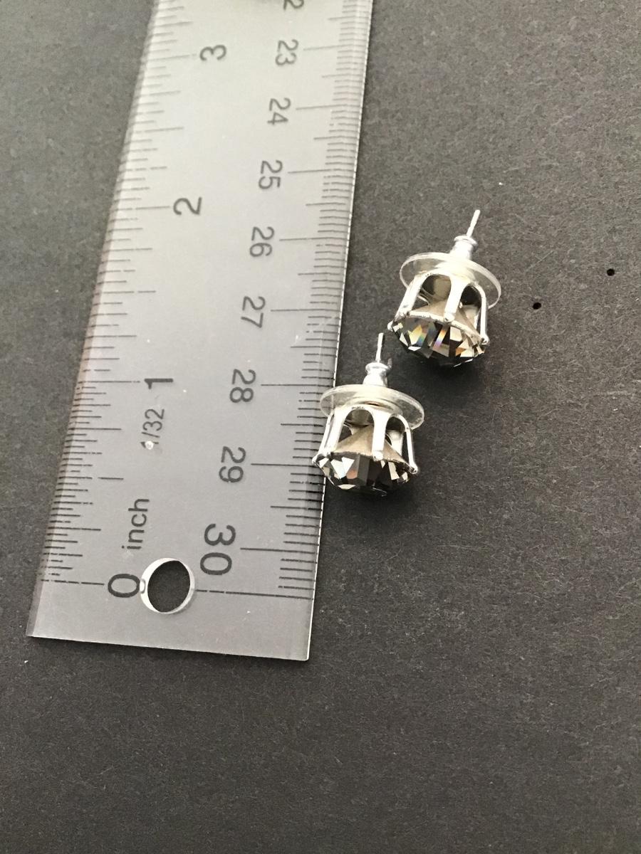 Chunky silver tone, smoked rhinestone earrings. Please see attached photos.