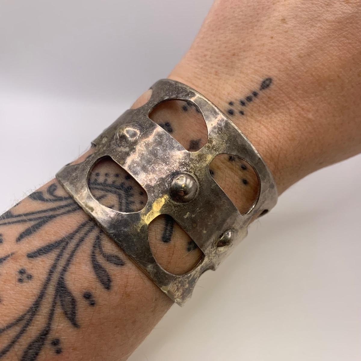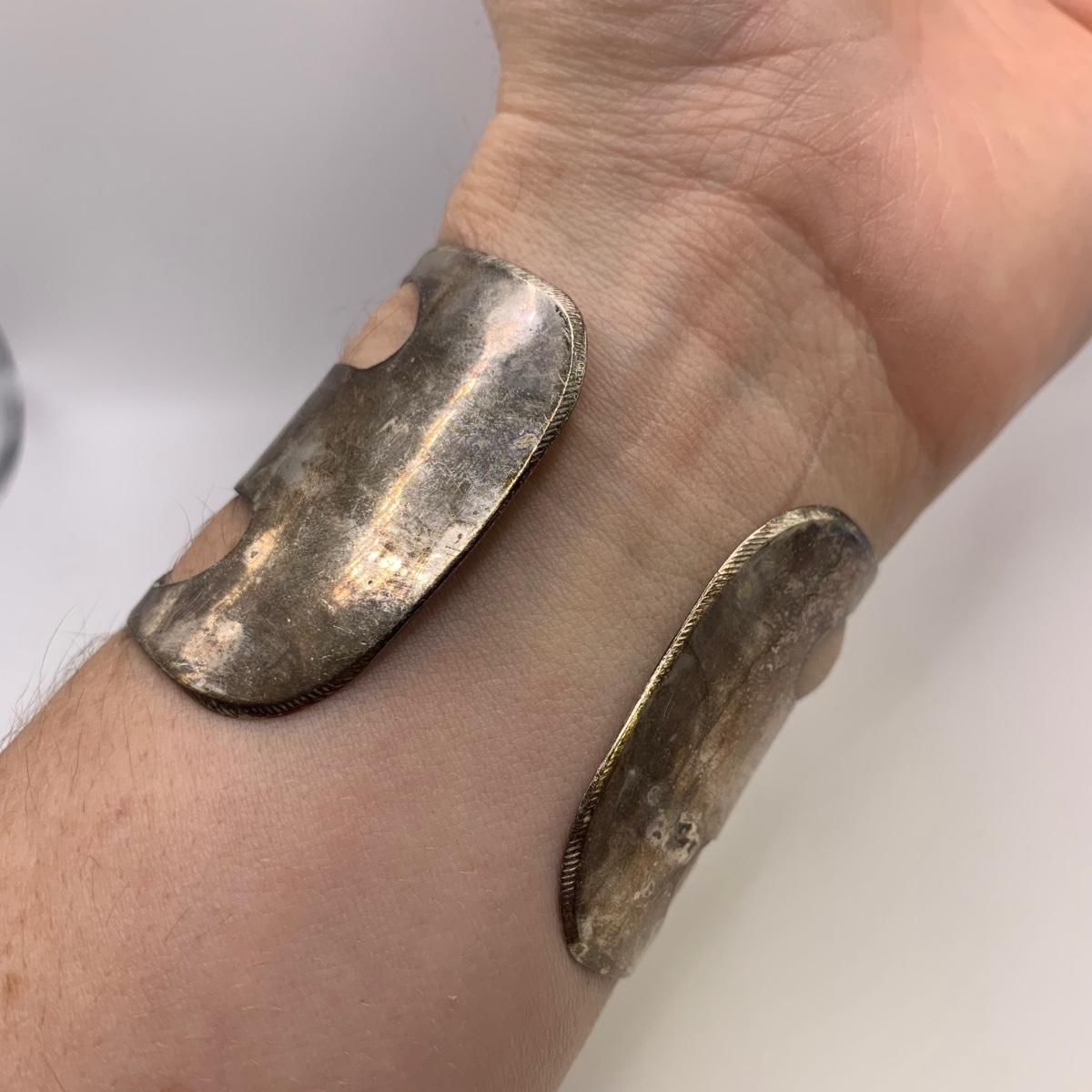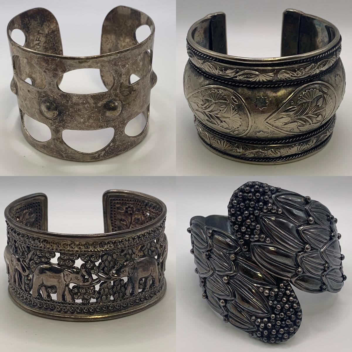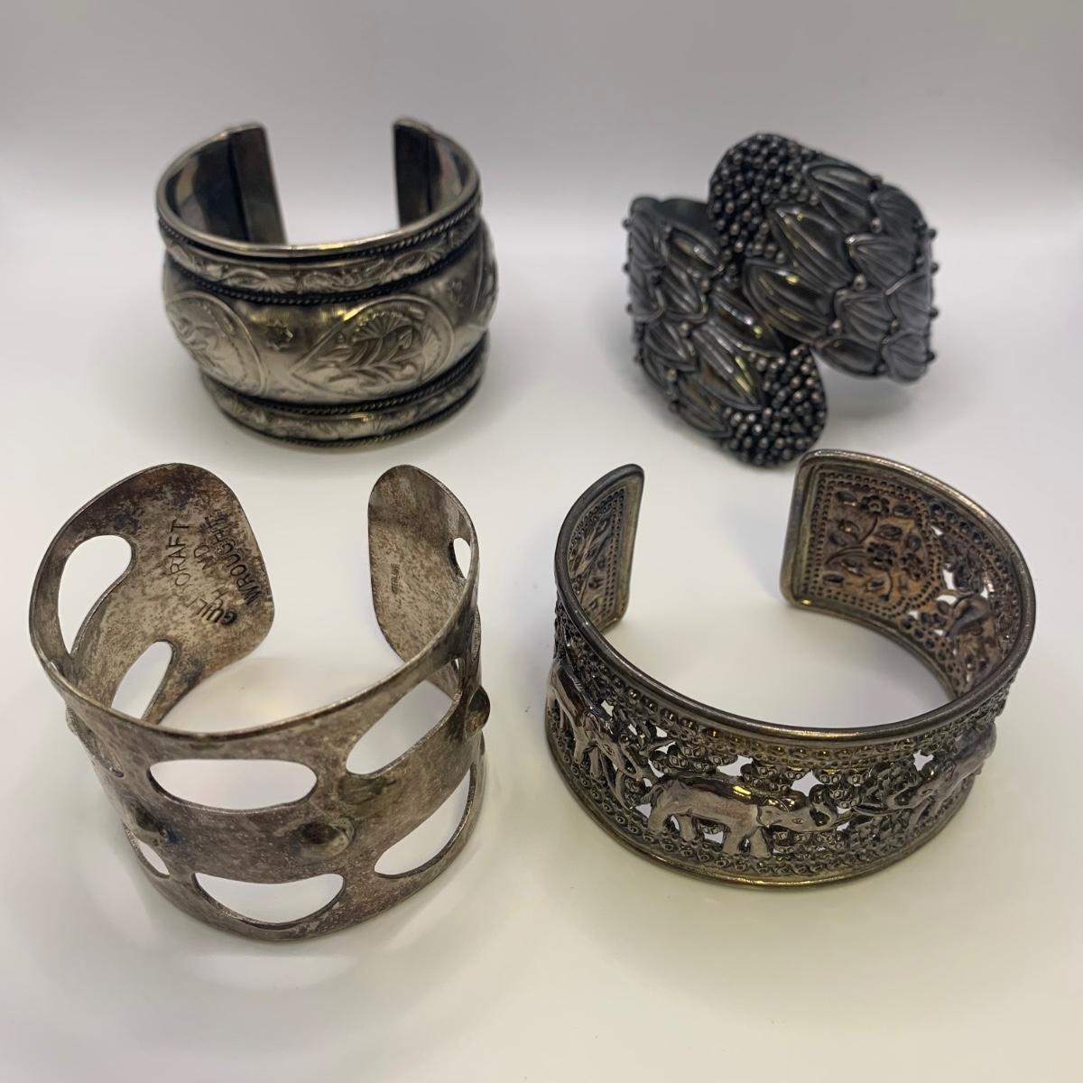 Four chunky cuff bracelets, three of which are marked Sterling or 925. Please see photos for details and all markings.