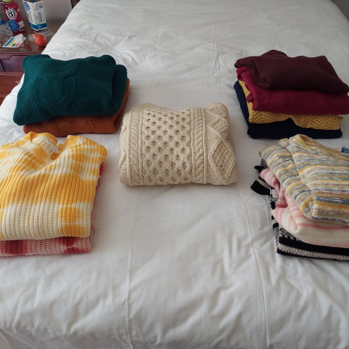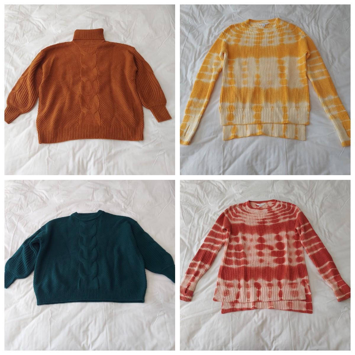 Lot includes 10+ chunky women's sweaters in sizes small and medium. Brands include Zenana, Time & Tru, Tommy Bahama, J. Jill and more. Please see photos for details. Shipping available