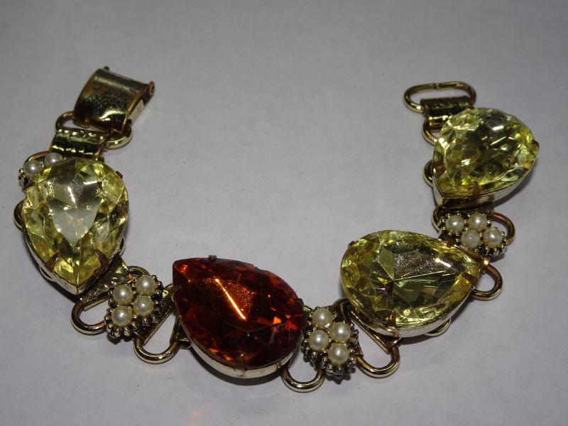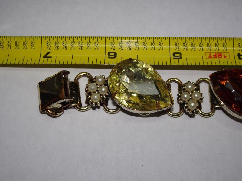 Chunky Tear Drop Citrine & Amber Colored Rhinestone Bracelet, Great Fall Colors