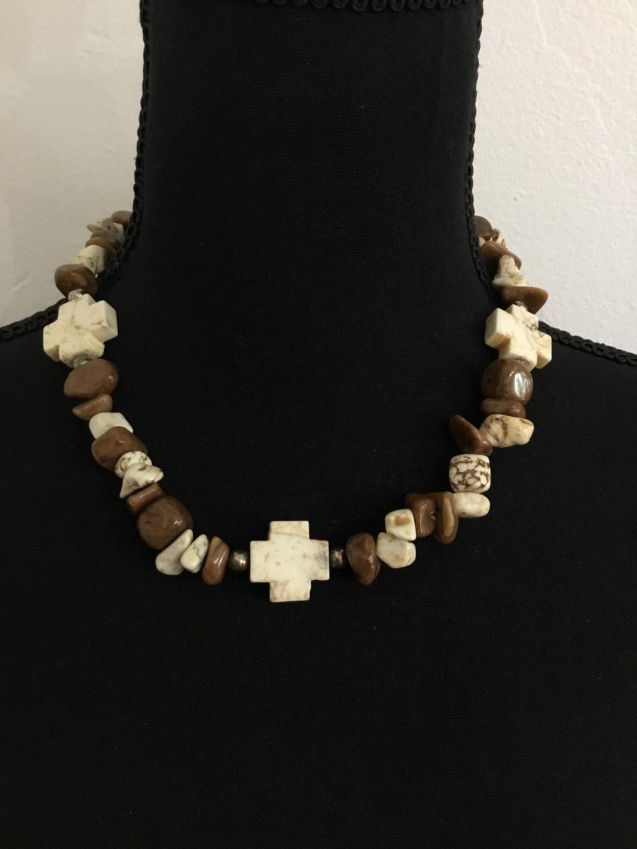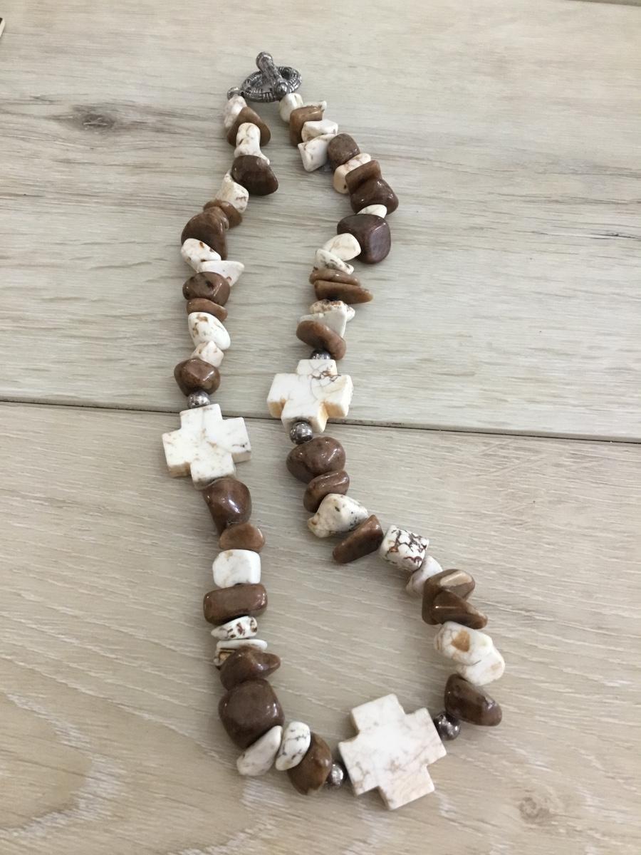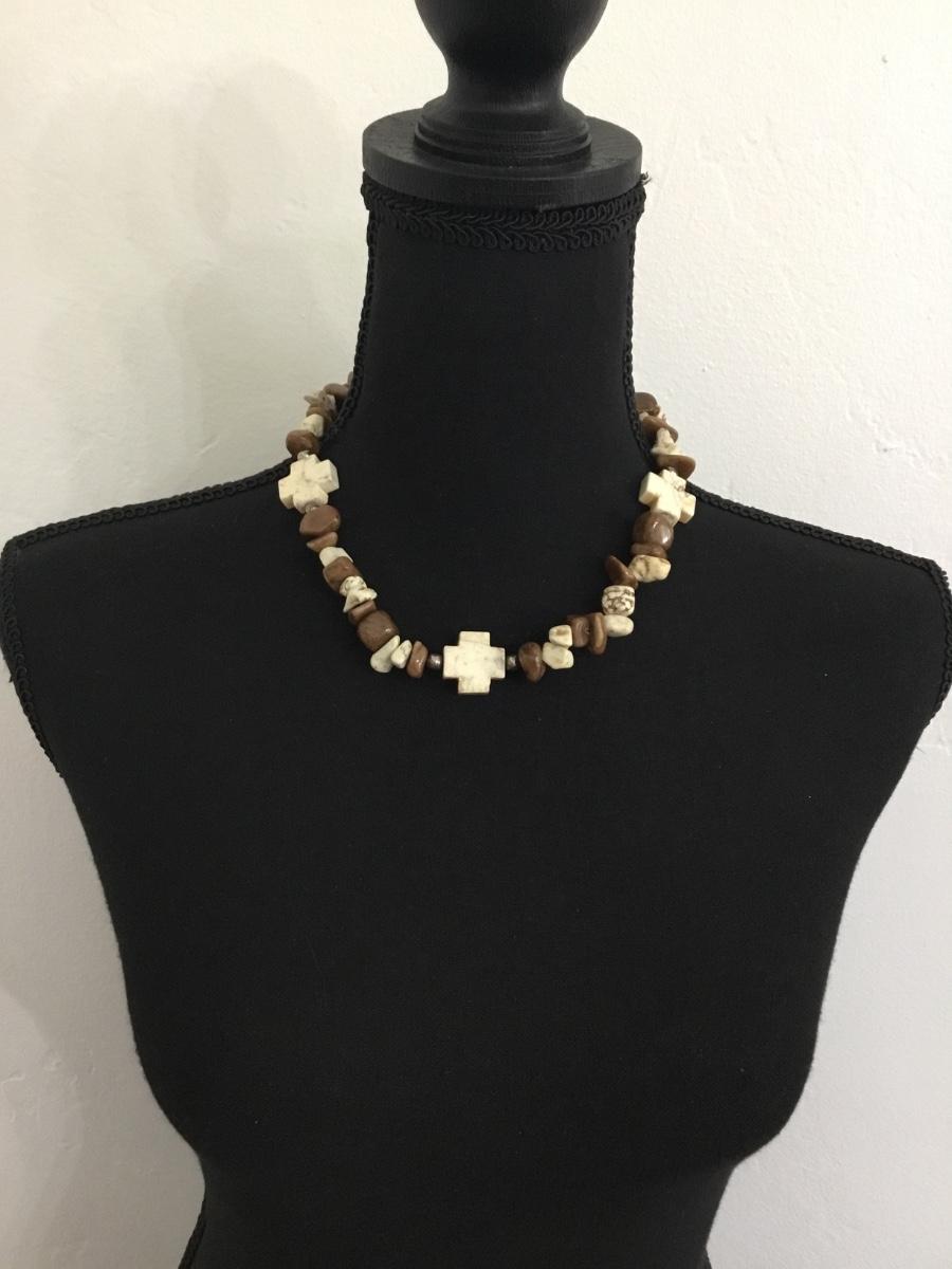 Chunky thick stone cross toggle necklace