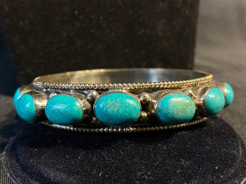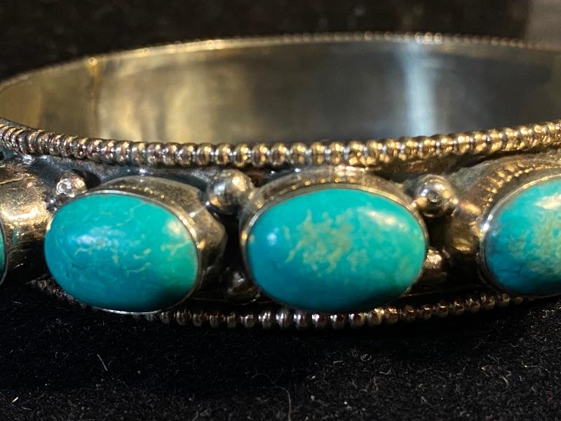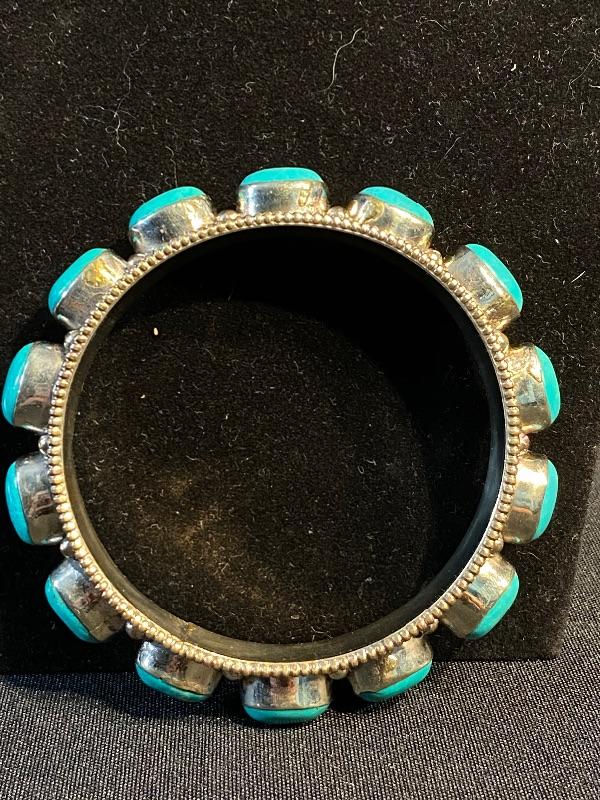 Chunky Turquoise Bracelet. Heavy. 2.75" inside opening. No makers mark.