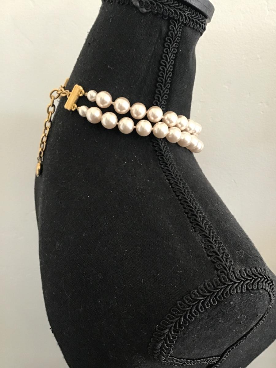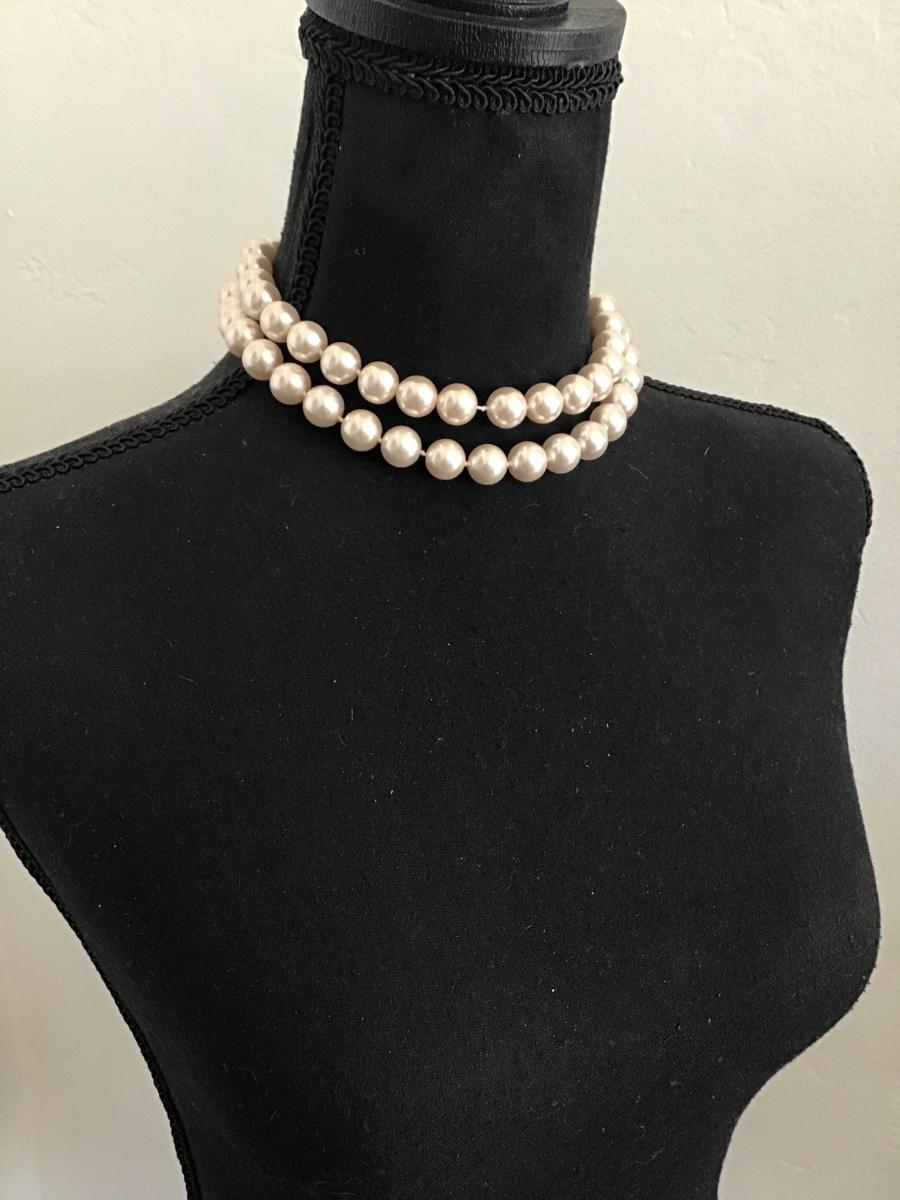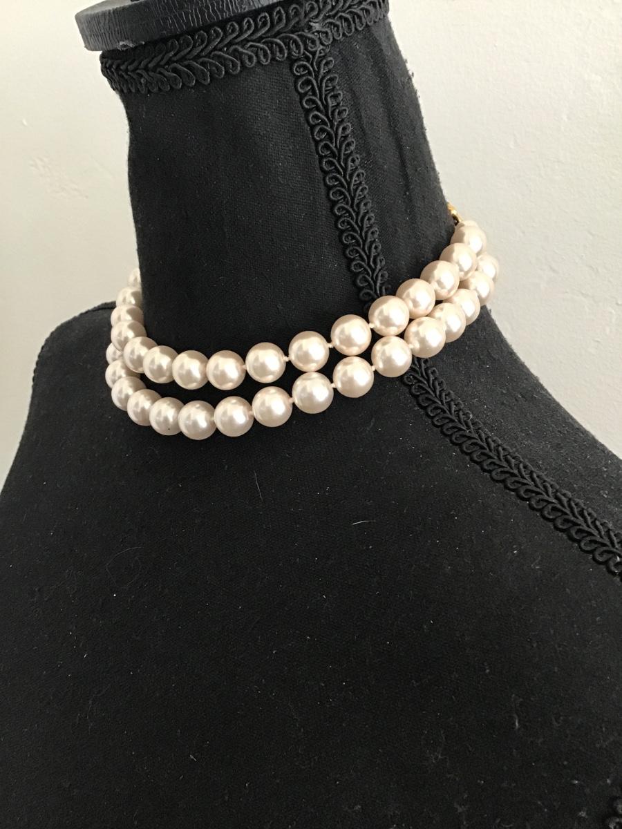 Chunky vintage faux, pearl choker, necklace, double strand, gold toned