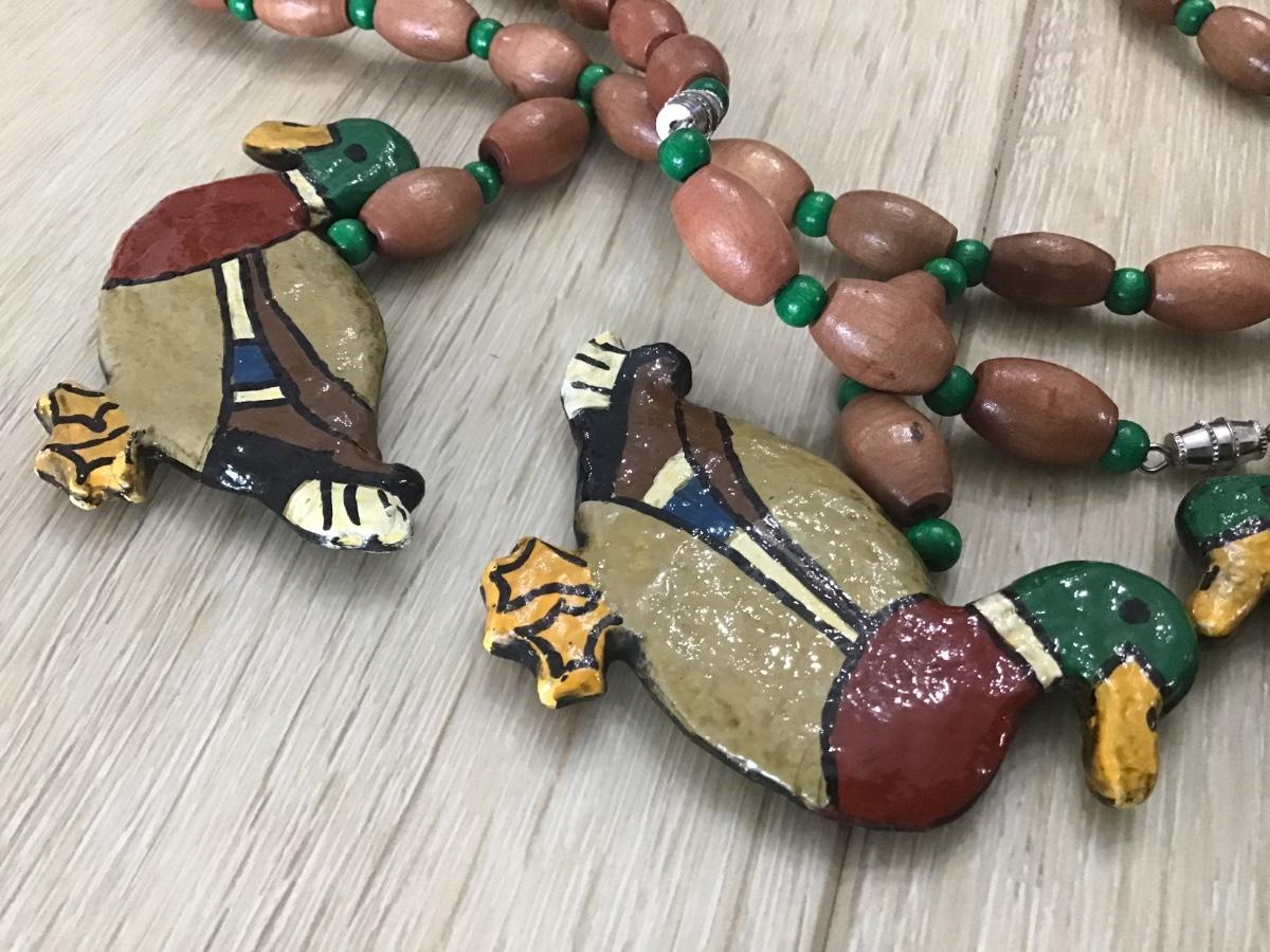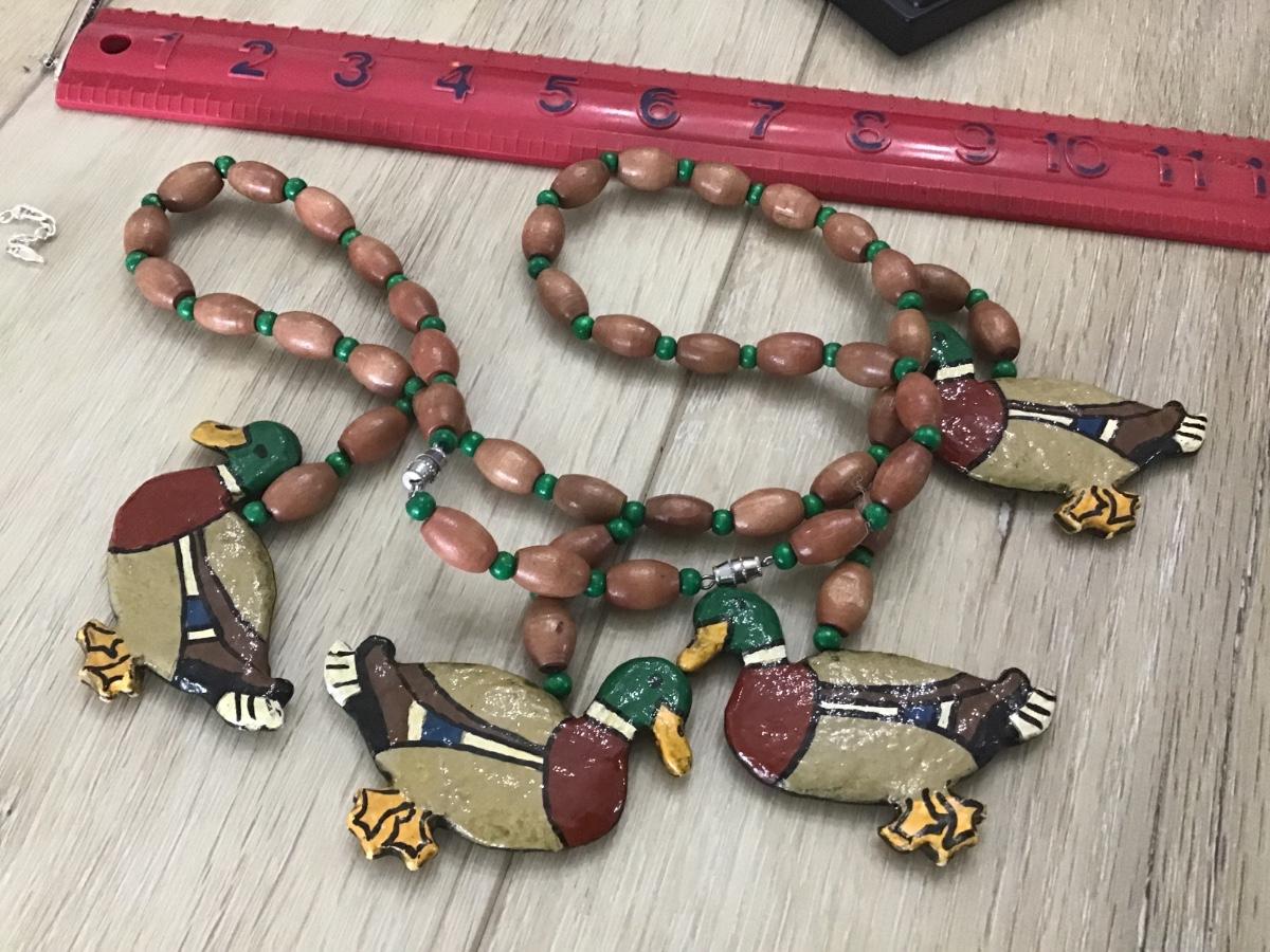 Chunky Wooden Carved Mallard Duck Ducks Necklace Hand Painted. Barrel Clasp