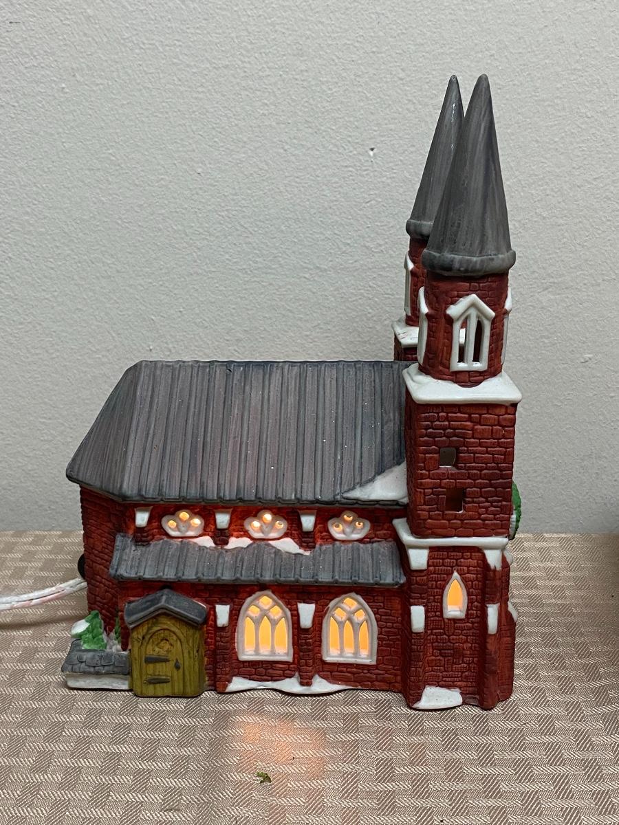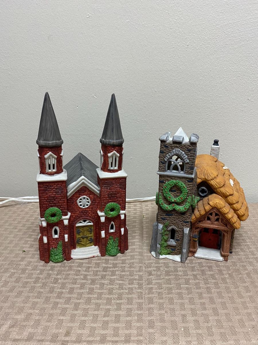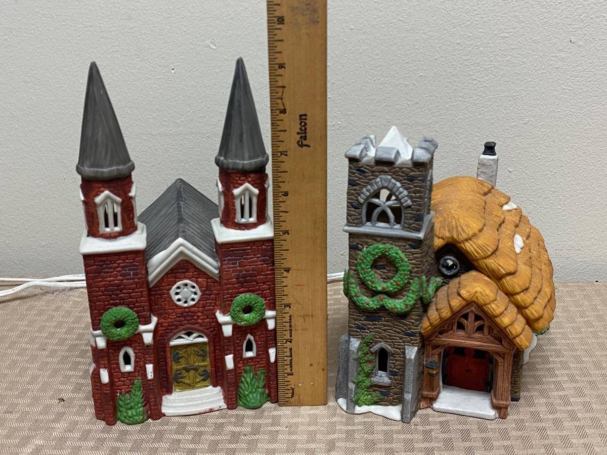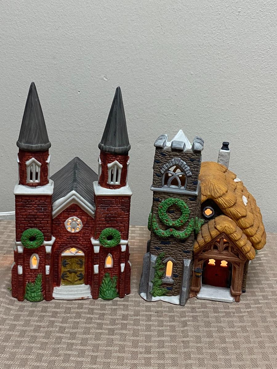 Pair of Dept 56 Light Up Christmas Holiday Church Buildings