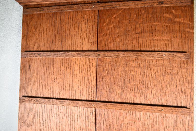 Vintage wooden hymn and prayer board, repurposed to be a photo display with cut to size glass for each shelf. Beautiful wood.